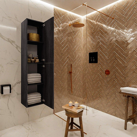 De MONDIAZ BEAM Kolomkast onderscheidt zich door zijn stijlvolle uitstraling. Het antracietkleurige design geeft een eigentijdse touch aan de badkamer. De strakke lijnen en de subtiele afwerking zorgen voor een tijdloze elegantie die de kast tot een blikvanger maakt. Met zijn slanke vormgeving past deze kolomkast perfect in zowel kleine als grote badkamers, waardoor functionaliteit en esthetiek hand in hand gaan.