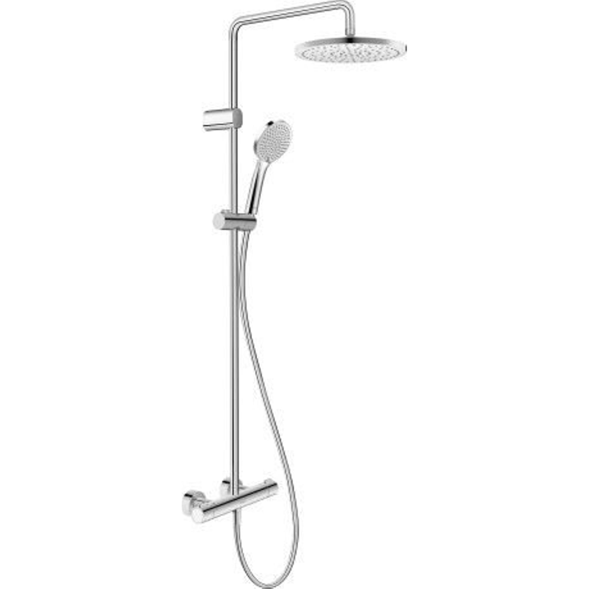 Ontdek het prachtige Duravit Shower Systems Douchesysteem, compleet met thermostatische functie en een elegant design. Met een afstand van 15cm tussen de aansluitingen, een hoofddouche van Ø25.2cm en een handdouche in een ronde vorm, straalt dit douchesysteem luxe en comfort uit. De glans chroom afwerking voegt een vleugje stijl toe aan elke badkamer.