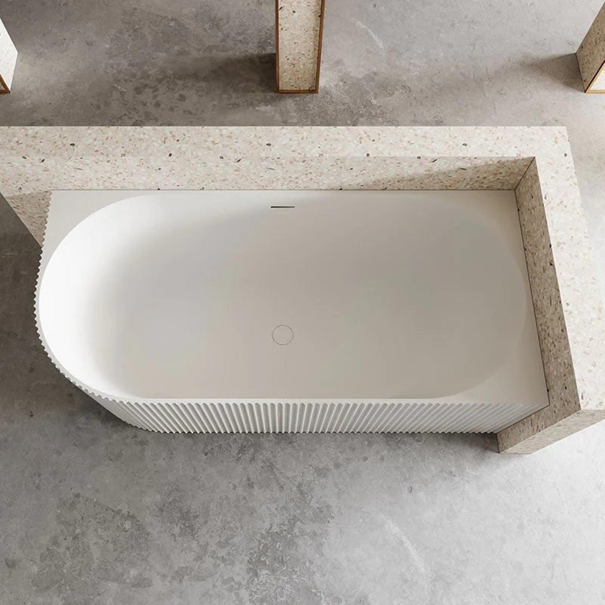 Ervaar ultieme ontspanning en comfort in dit luxe ZEZA Blend hoekbad. De ribbelige textuur voegt niet alleen een uniek visueel element toe, maar zorgt ook voor een aangename massage-effect tijdens het baden. De rechterhoekige vorm van dit bad optimaliseert de ruimte in je badkamer en biedt een ruime binnenruimte om volledig tot rust te komen na een lange dag.