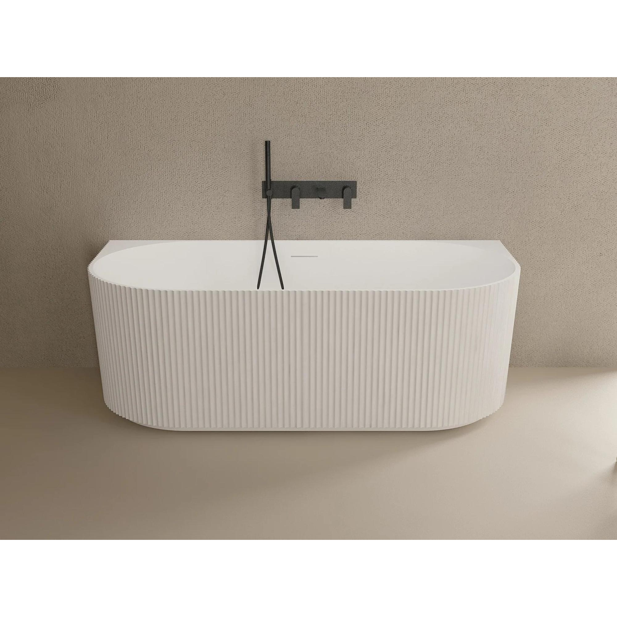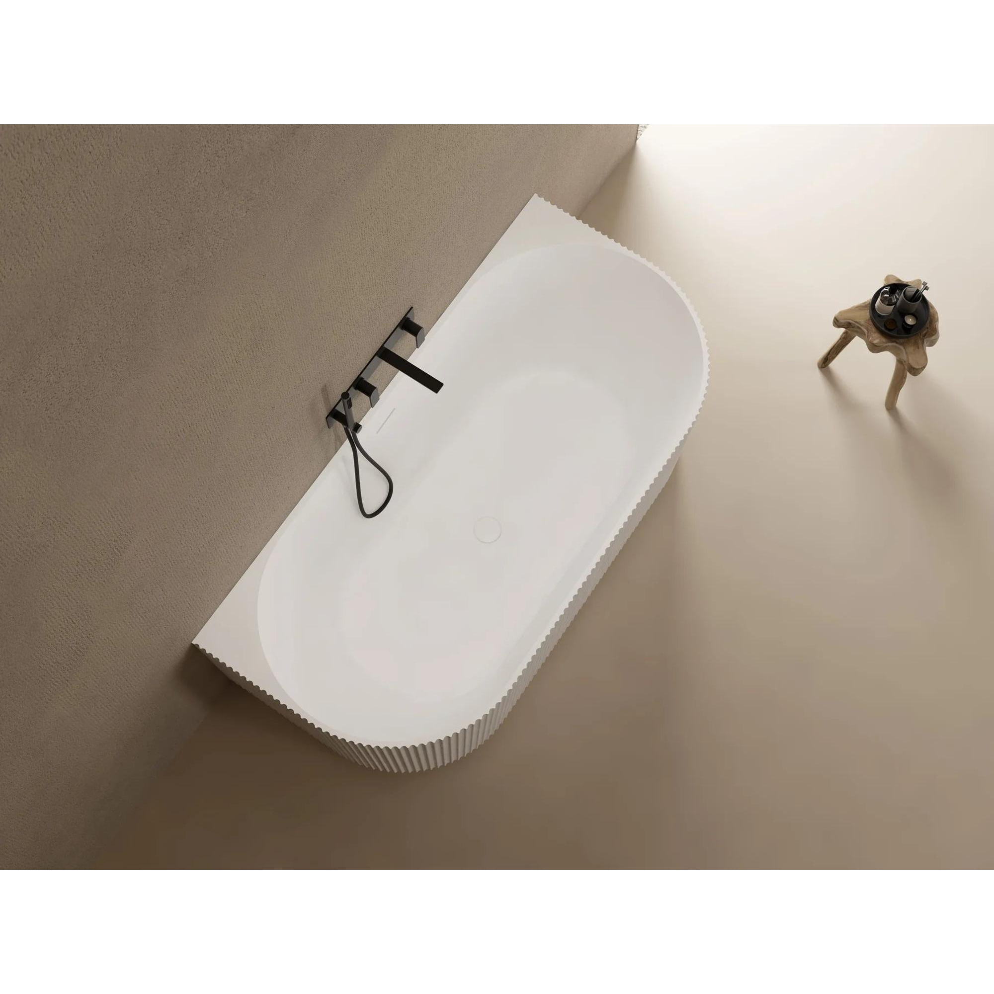 ZEZA Blend half vrijstaand bad - ribbel - 170x80x58cm - met afvoer - acryl - mat wit