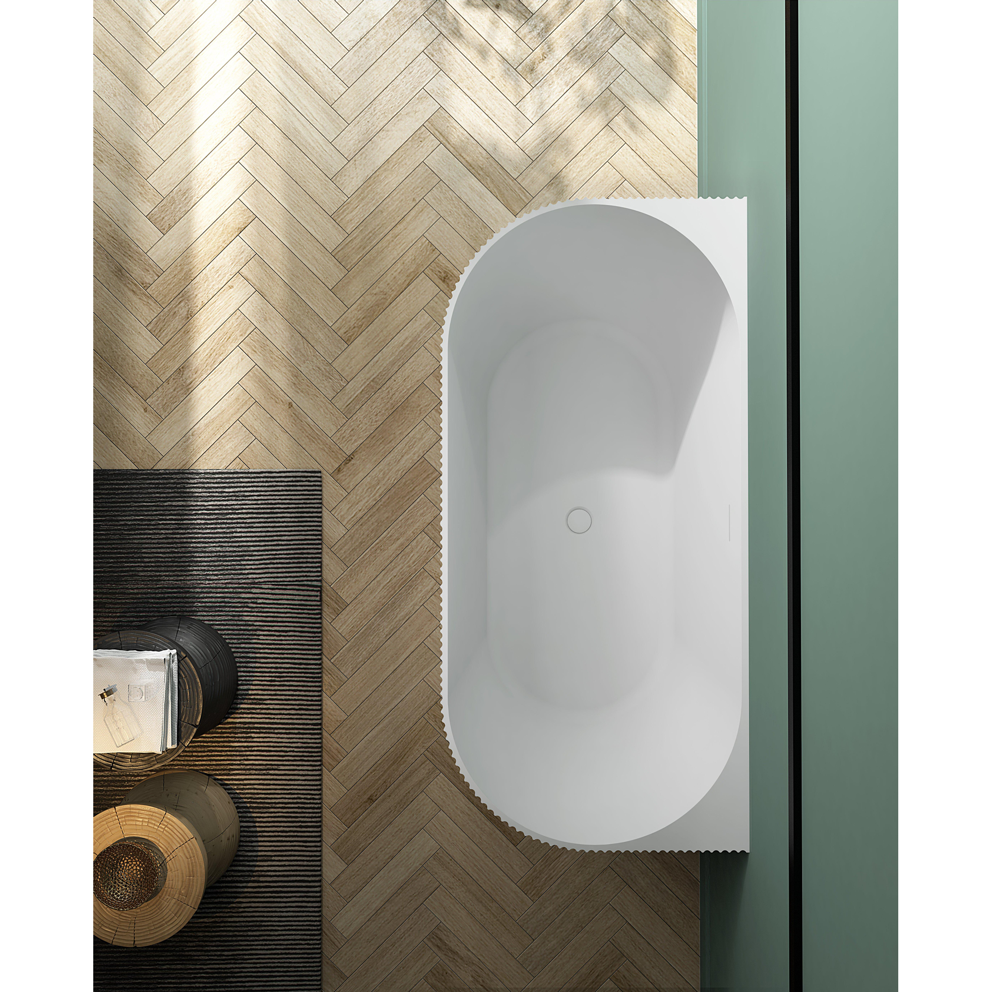 Met de ribbelstructuur van het ZEZA Blend bad geniet je van extra comfort tijdens het baden. De zachte ribbels zorgen voor een ergonomische ondersteuning en voegen een subtiele textuur toe aan het design. De afvoer is strategisch geplaatst voor een efficiënte waterafvoer, waardoor je zorgeloos kunt genieten van een ontspannend bad.