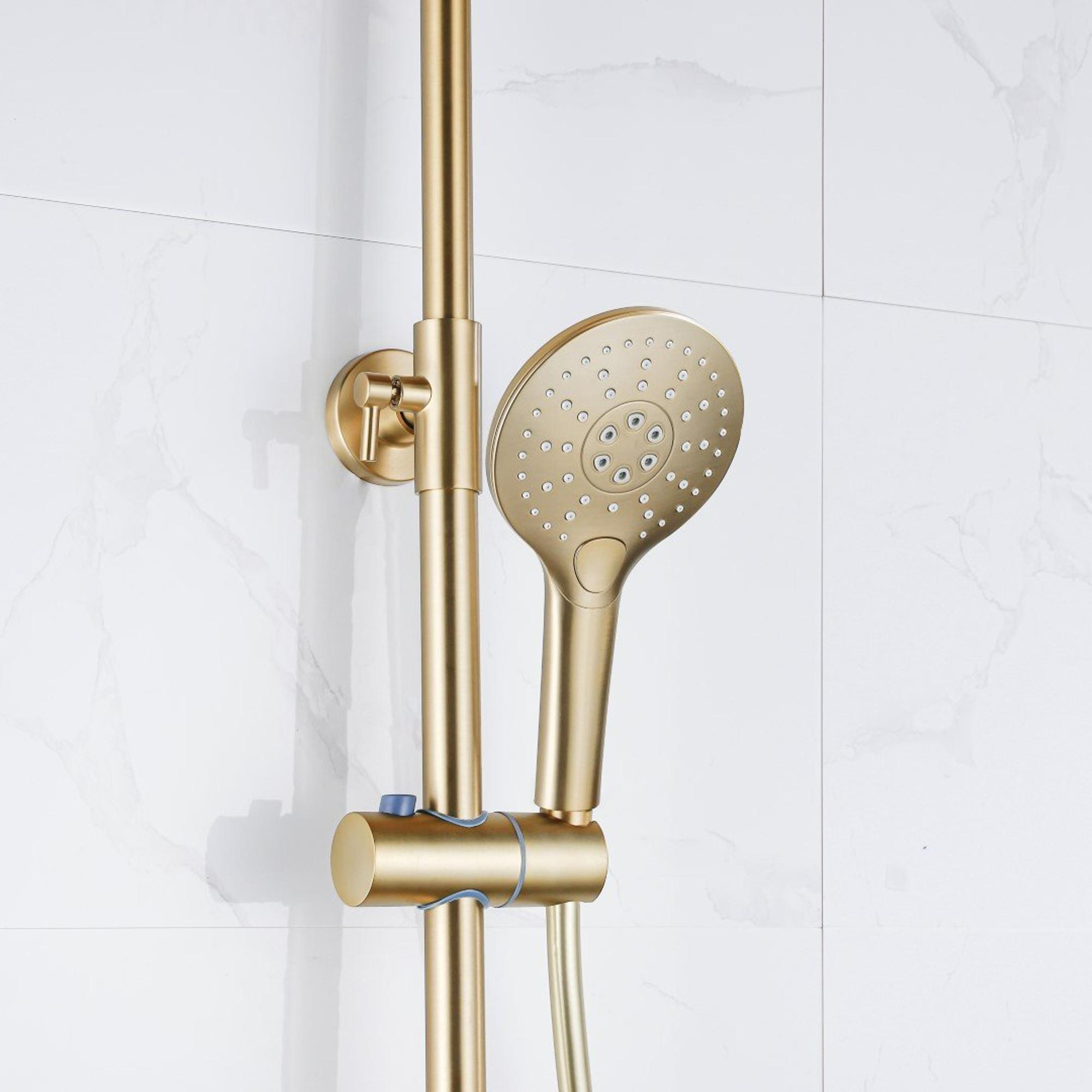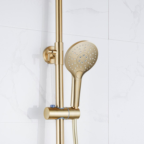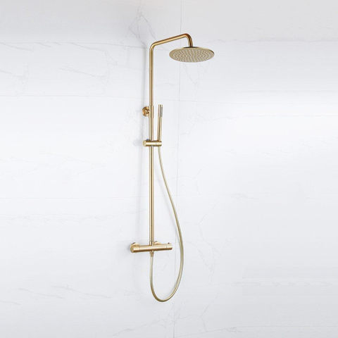 Deze regendoucheset is uitgevoerd in een geborsteld gouden kleur. De afwerking is enorm populair, vanwege de elegante en chique uitstraling. De Fortifura Calvi regendoucheset zal dan ook prachtig staan in luxe en moderne badkamers. De gouden tint geeft de ruimte direct een luxueuze en sfeervolle uitstraling.