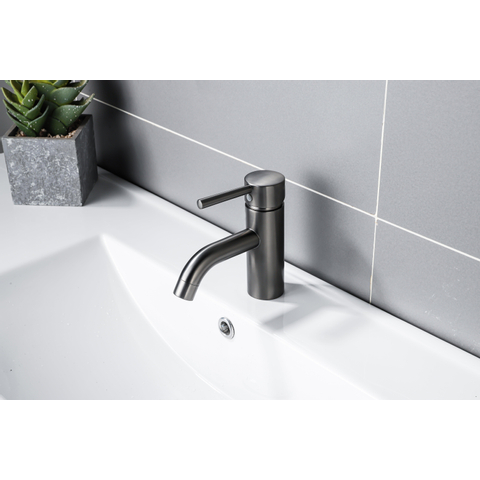 Stoer gunmetalGunmetal sanitair wordt steeds populairder. De stoere, bijna mat zwarte look, geeft de ruimte direct een stoere en luxe uitstraling. Hierdoor past deze wastafelkraan dan ook goed in een modern of industrieel interieur. Door de unieke samenstelling van gunmetal is de toplaag ijzersterk, en zijn kalk en zeepresten nauwelijks zichtbaar. Met deze Fortifura Calvi wastafelkraan haal je dus een echte blikvanger in huis!