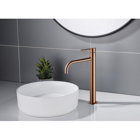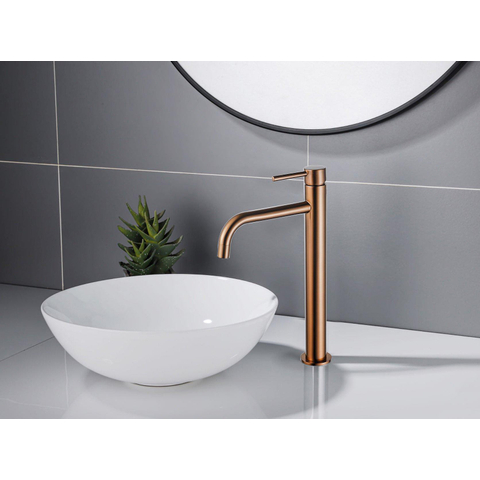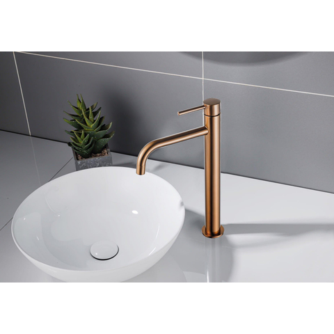 Fortifura Calvi Slim Wastafelkraan - 32cm - verhoogd - opbouw - Geborsteld koper PVD (Koper)