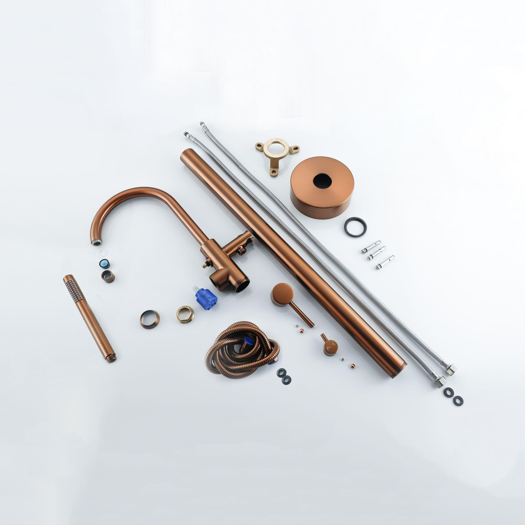 Fortifura Calvi Vrijstaande Badkraan - 113cm -handdoucheset - Geborsteld koper PVD (Koper)
