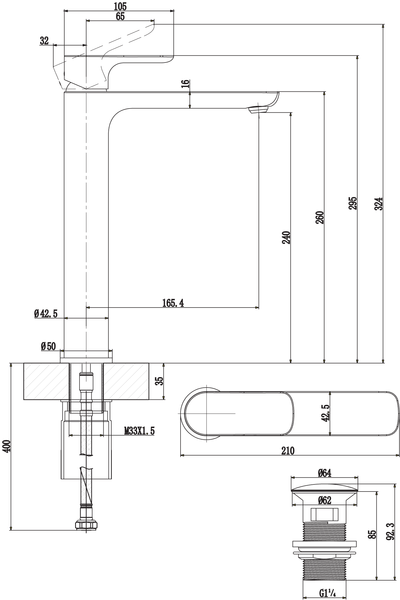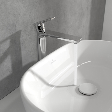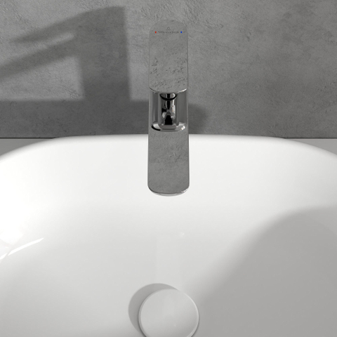 Villeroy & Boch O.novo Eengreeps wastafelkraan verhoogd met Push-Open afvoergarnituur - chroom