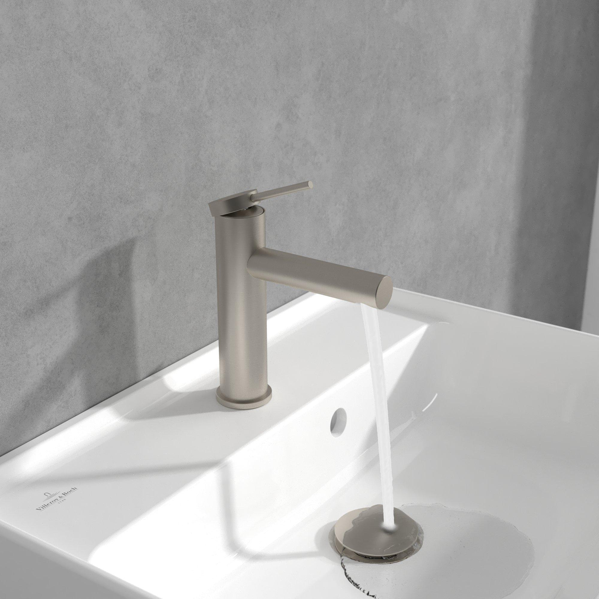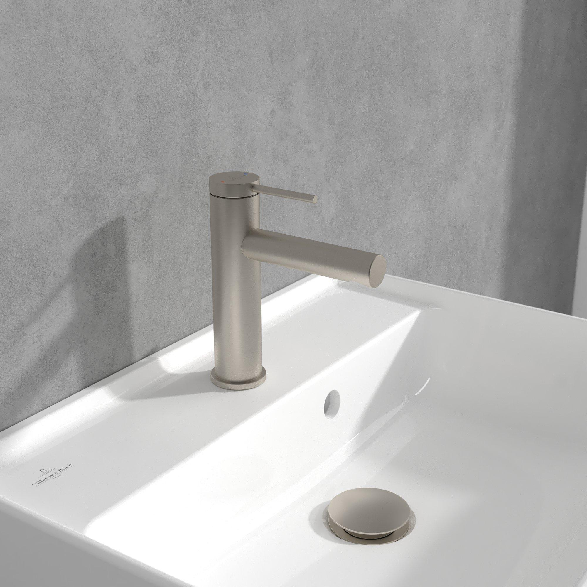 Villeroy & Boch Loop & Friends Eengreeps wastafelkraan met trekstang-afvoergarnituur - Matt Brushed Nickel (RVS)