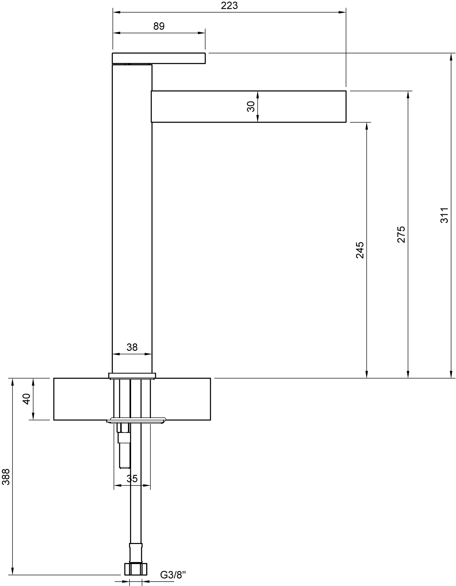 | Hoogte kraan | Hoog |