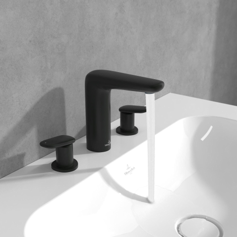 Villeroy & Boch Antao - Driegats wastafelkraan - met Push-Open afvoergarnituur - mat zwart