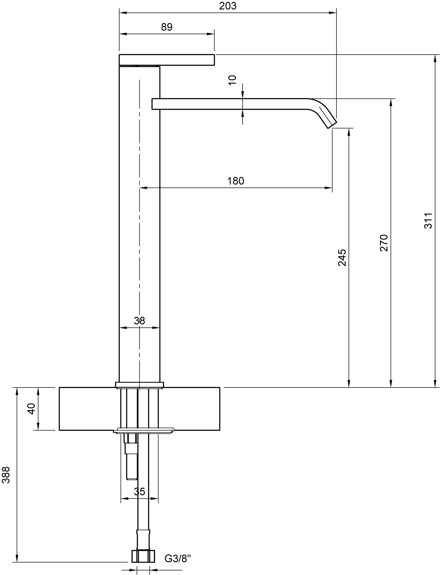 | Voorsprong uitloop | 18 cm | |