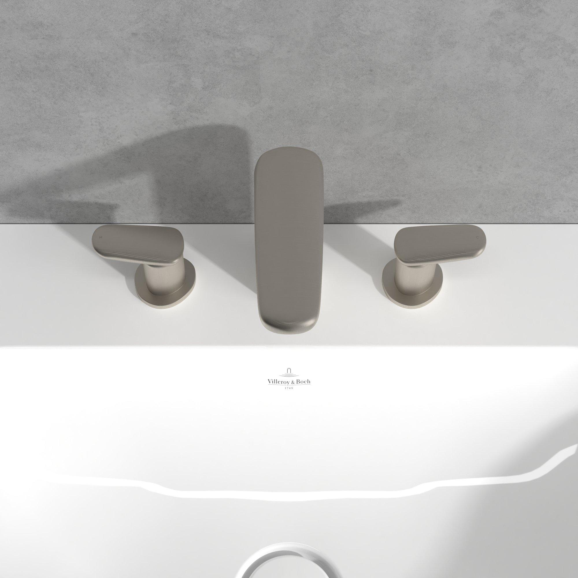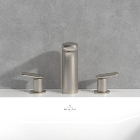 Villeroy & Boch Antao Driegats wastafelkraan - met Push-Open afvoergarnituur - Matt Brushed Nickel (RVS)