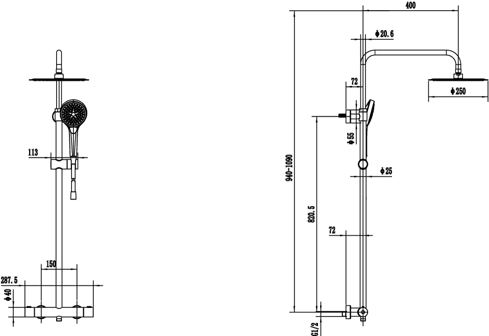 - Inclusief thermostaat en handdoucheslang van 1600 mm