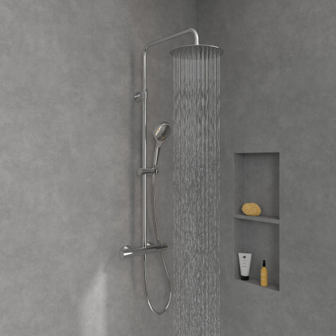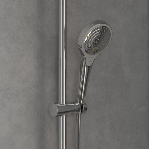 Het **Villeroy & Boch Verve Showers douchesysteem** is ontworpen voor ultiem comfort en luxe tijdens het douchen. Met een stijlvolle chromen afwerking en slimme functies biedt dit systeem alles wat je nodig hebt voor een weldadige douche-ervaring.Veelzijdig douchesysteem De geïntegreerde hoofddouche en handdouche maken dit systeem compleet. De handdouche biedt drie straalsoorten: een ontspannende relaxstraal, een verkwikkende massagestraal en een krachtige intensieve straal. Je wisselt eenvoudig tussen de straalsoorten met een druk op de knop, afhankelijk van jouw behoeften. De handdouchehouder is verstelbaar in hoogte en kantelbaar, waardoor je de perfecte positie kunt instellen.