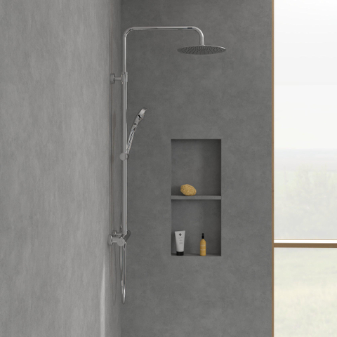 Het douchesysteem heeft een glossy chroomafwerking die zowel stijlvol als duurzaam is, terwijl de hoogwaardige materialen zoals messing bijdragen aan een lange levensduur.