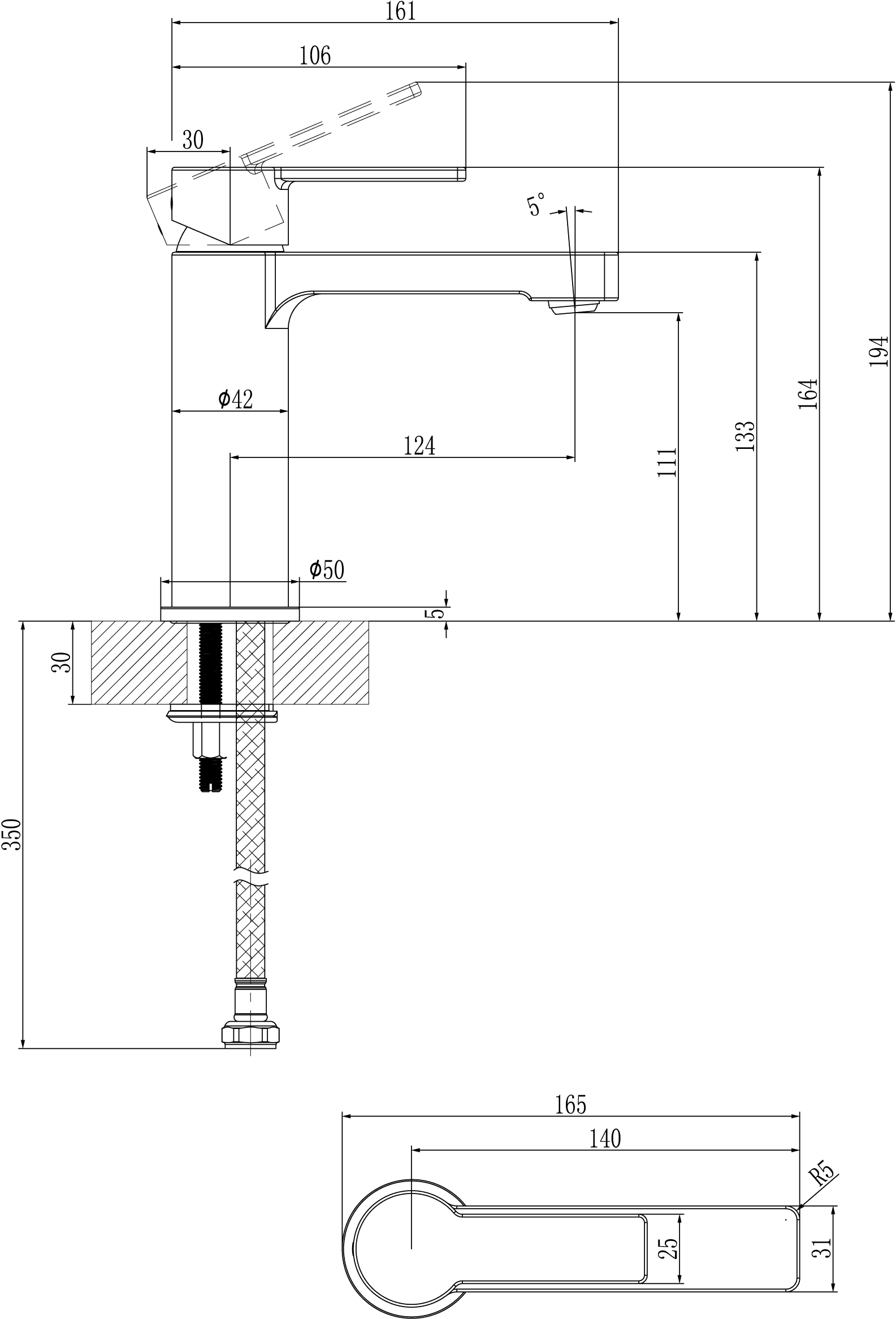 | Hoogte kraan | Standaard |