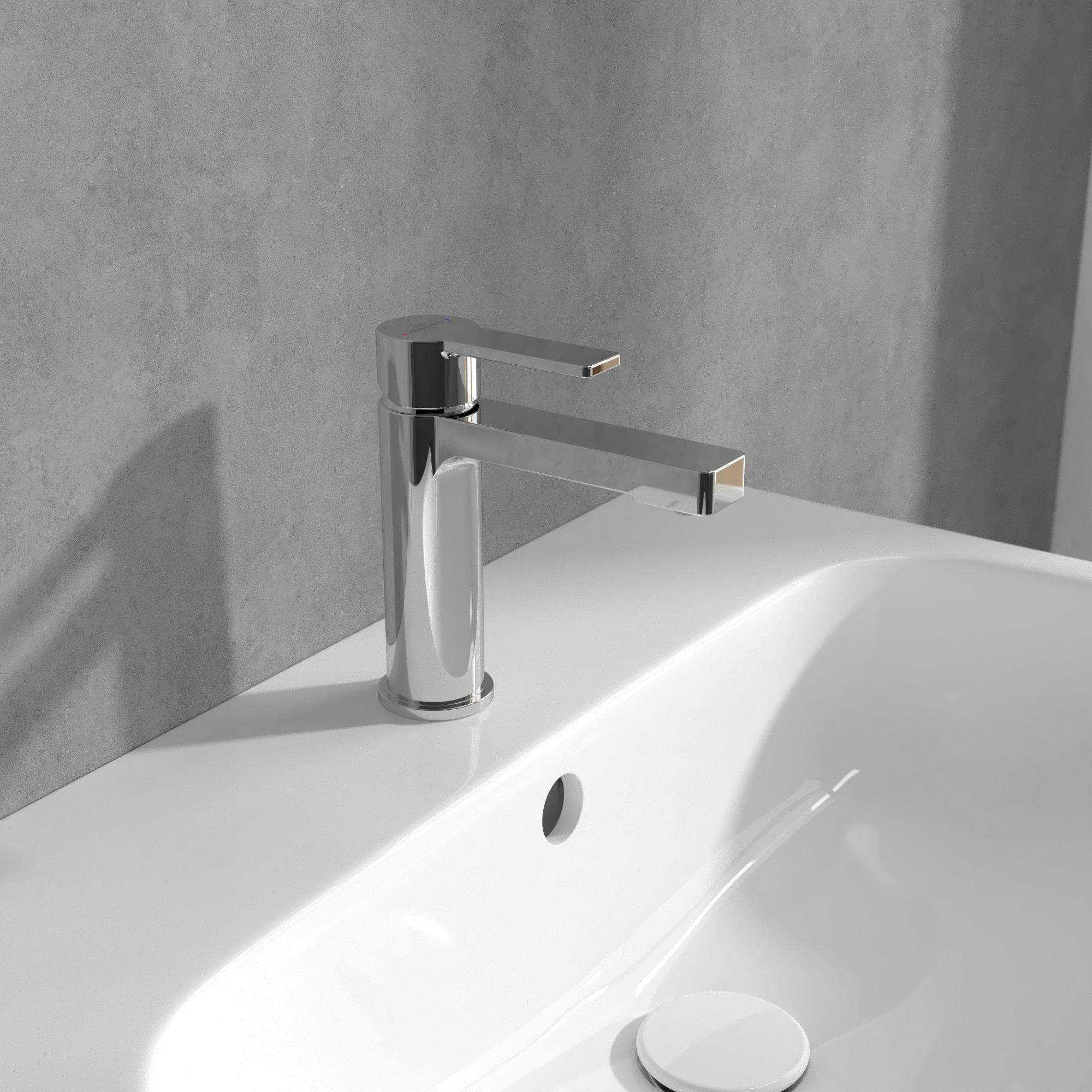 De Villeroy & Boch Architectura eengreeps wastafelkraan in chroom combineert elegantie met functionaliteit en is een prachtige toevoeging aan jouw badkamer. Gemaakt van hoogwaardig messing met een glanzende chroomafwerking, biedt deze kraan een modern design met slanke contouren en een platte uitloop die perfect aansluit bij de stijl van de Architectura-collectie.De kraan is voorzien van een schuimstraler (AirPlus) die het water met lucht verrijkt. Dit zorgt niet alleen voor een zachte en comfortabele waterstraal, maar helpt ook water te besparen. De AquaSmart-technologie beperkt de doorstroomhoeveelheid, zodat je kunt genieten van een milieuvriendelijke waterstroom zonder in te leveren op comfort. Dankzij de duurzame materialen is de kraan gemakkelijk schoon te maken en bestand tegen kalkafzetting.