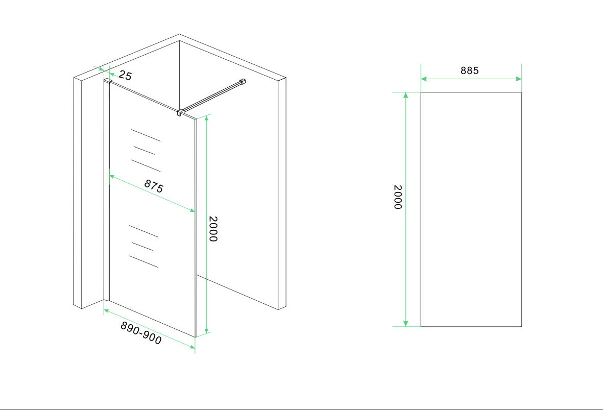 | Type douchewand | Losse glasplaat | |