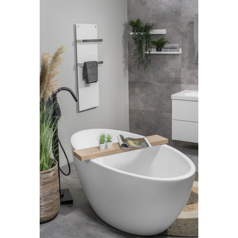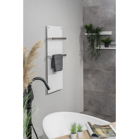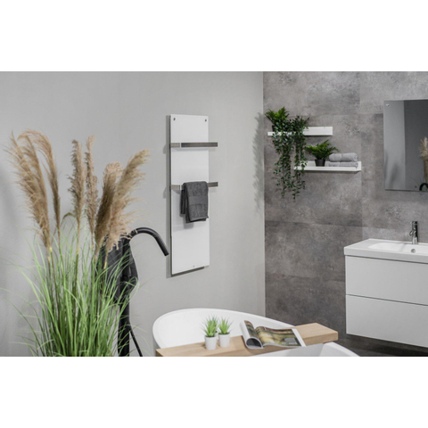 Eurom Sani 1000 Comfort Badkamerkachel 127x55cm Wifi 1000watt Glas WitStap jij in de ochtend wel eens een koude badkamer binnen? Wij hebben de perfecte oplossing. Met de Eurom Sani 1000 badkamerverwarming stap je altijd een warme badkamer binnen. Het zwarte infrarood paneel geeft de badkamer direct een moderne, chique en unieke uitstraling. Daarnaast is het ook mogelijk om je handdoek aan de verwarming op te hangen. Dankzij de roestvrijstalen beugels die aan het infrarood paneel zijn bevestigd, hangt er altijd een warme handdoek voor je klaar.