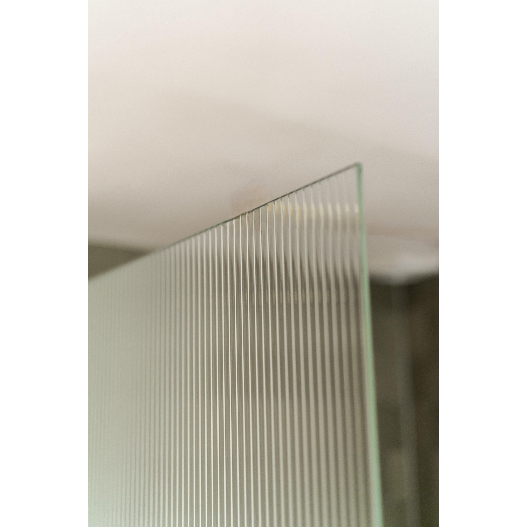 Fortifura Galeria Vrijstaande Inloopdouche - 110x200cm - Helder geribbeld - antikalk - 8mm veiligheidsglas - wandsteunen - Geborsteld RVS PVD (RVS)