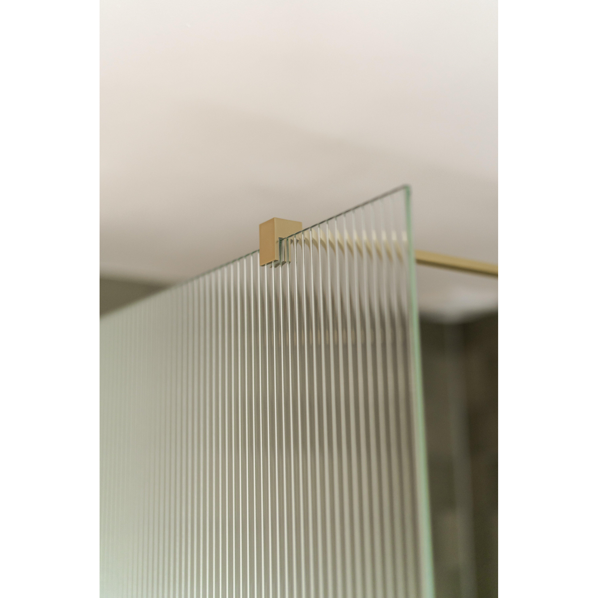 Fortifura Galeria Vrijstaande Inloopdouche - 140x200cm - Helder geribbeld - antikalk - 8mm veiligheidsglas - wandsteunen - Geborsteld Messing PVD (Goud)