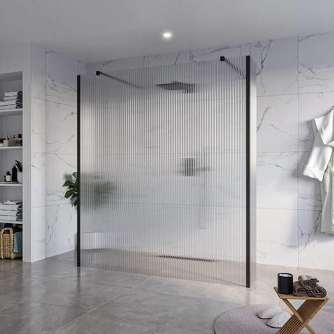 De Fortifura Galeria Vrijstaande Inloopdouche straalt een moderne elegantie uit die elke badkamer transformeert. De combinatie van het helder geribbelde 8mm veiligheidsglas en de zwarte matte afwerking creëert een eigentijdse look die perfect past bij een minimalistisch interieur. Deze inloopdouche is een statement van stijl en functionaliteit, waardoor douchen een luxe ervaring wordt.