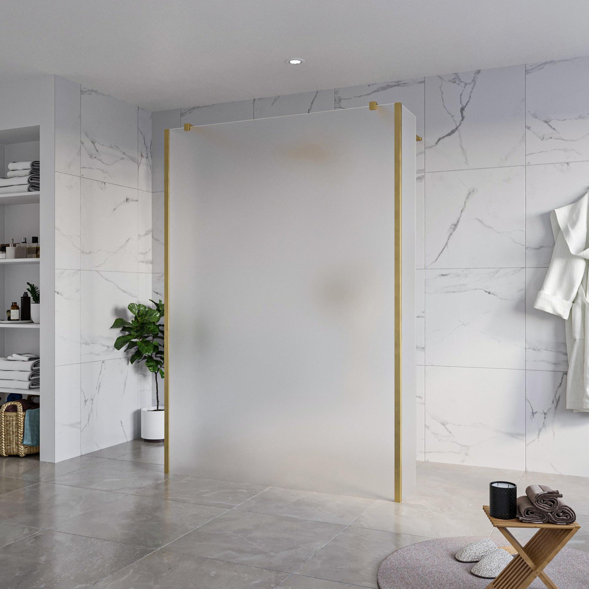Fortifura Galeria Vrijstaande Inloopdouche - 140x200cm - Glas mat - antikalk - 8mm veiligheidsglas - 2 zijwanden 40cm - wandsteunen en hoekprofielen - Messing geborsteld (goud)