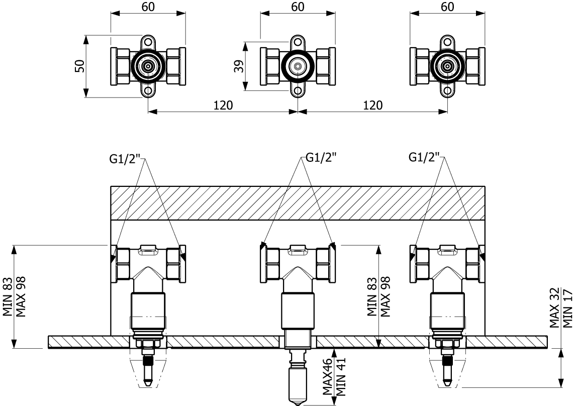Villeroy & Boch Loop & Friends Inbouwunit voor driegaats wastafelkraan voor wandmontage Rond - Messing