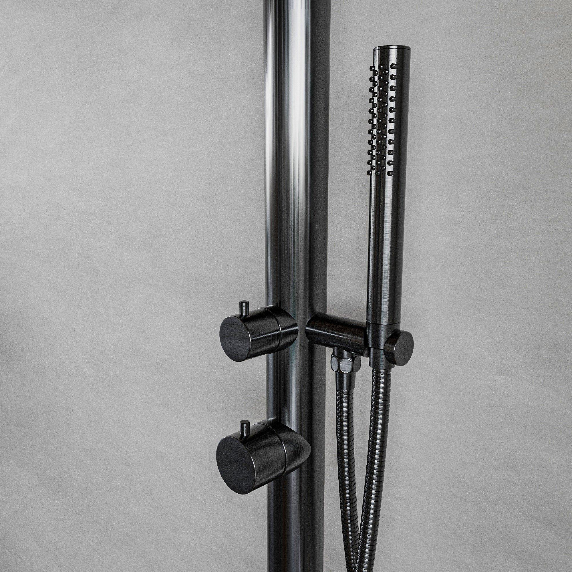Fortifura Outdoor Original Buitendouche - RVS 316 - handdouche - wandmodel - Geborsteld Gunmetal PVD