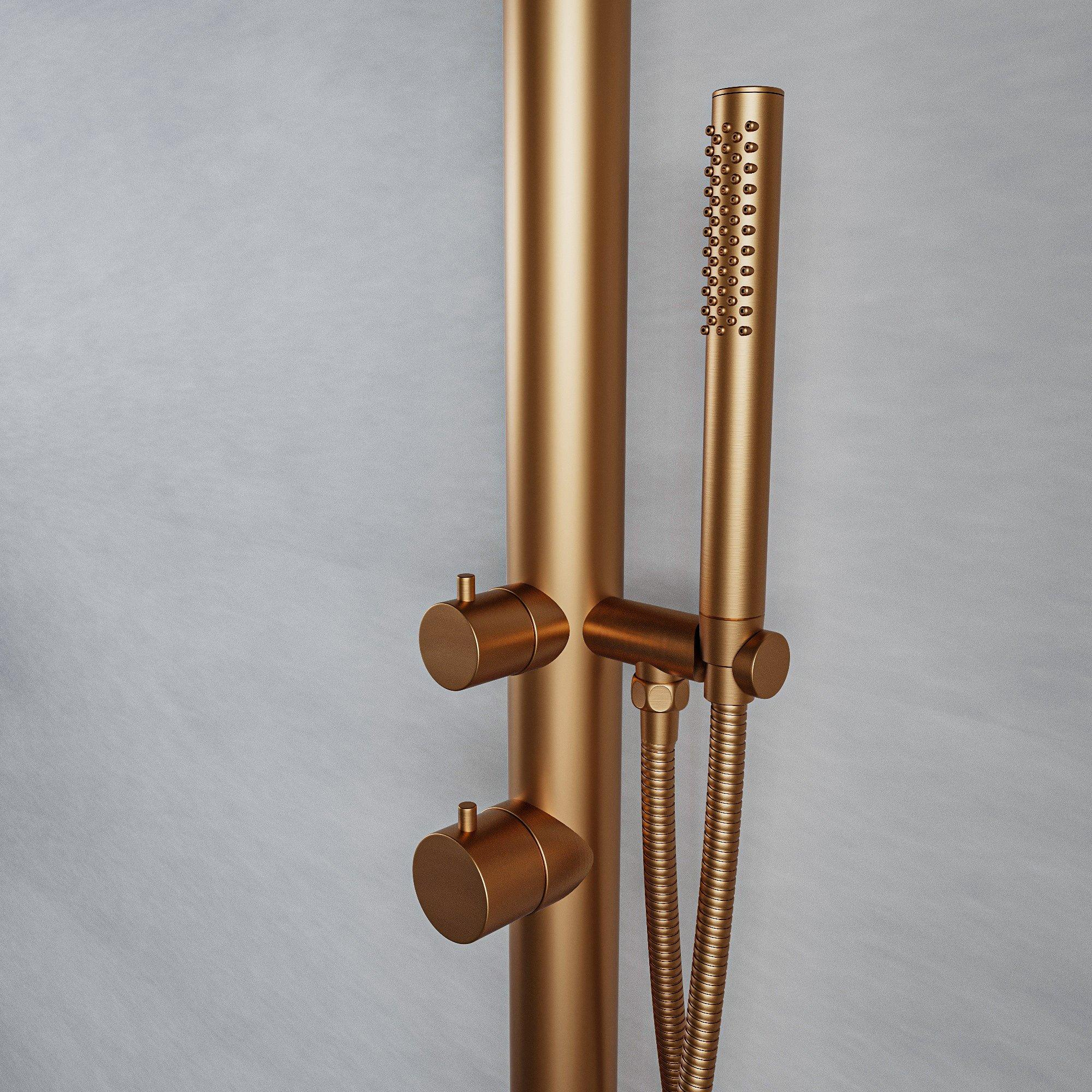 Fortifura Outdoor Original Buitendouche - RVS 316 - handdouche - wandmodel - geborsteld koper