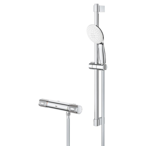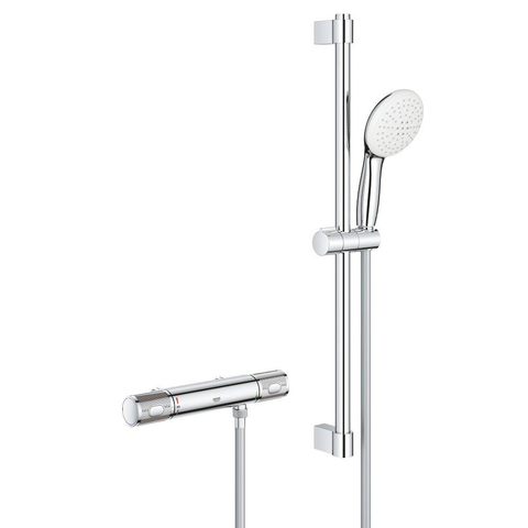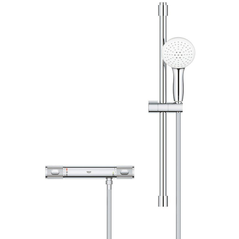 GROHE Grohtherm 1000 Performance Doucheset - thermostatische douchekraan - met glijstangset - 60cm - ronde handdouche - 2 straalsoorten - gladde doucheslang - chroom