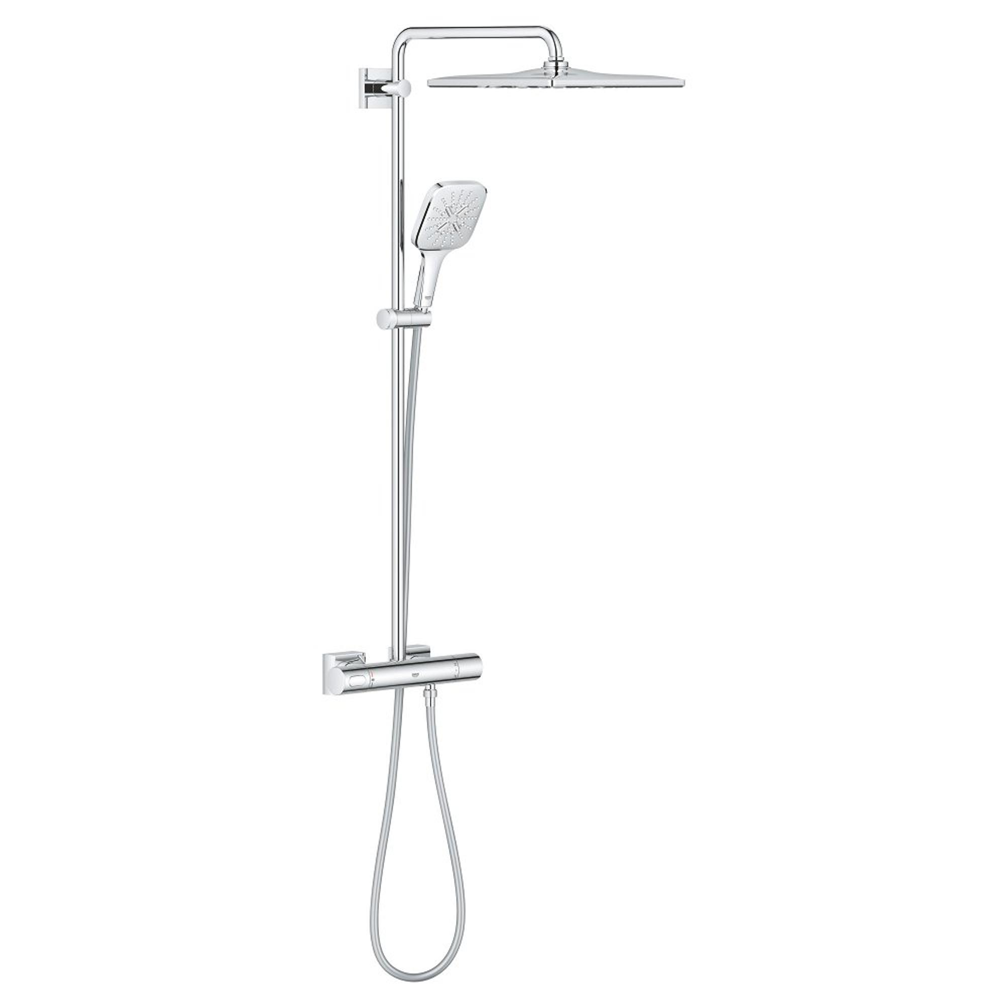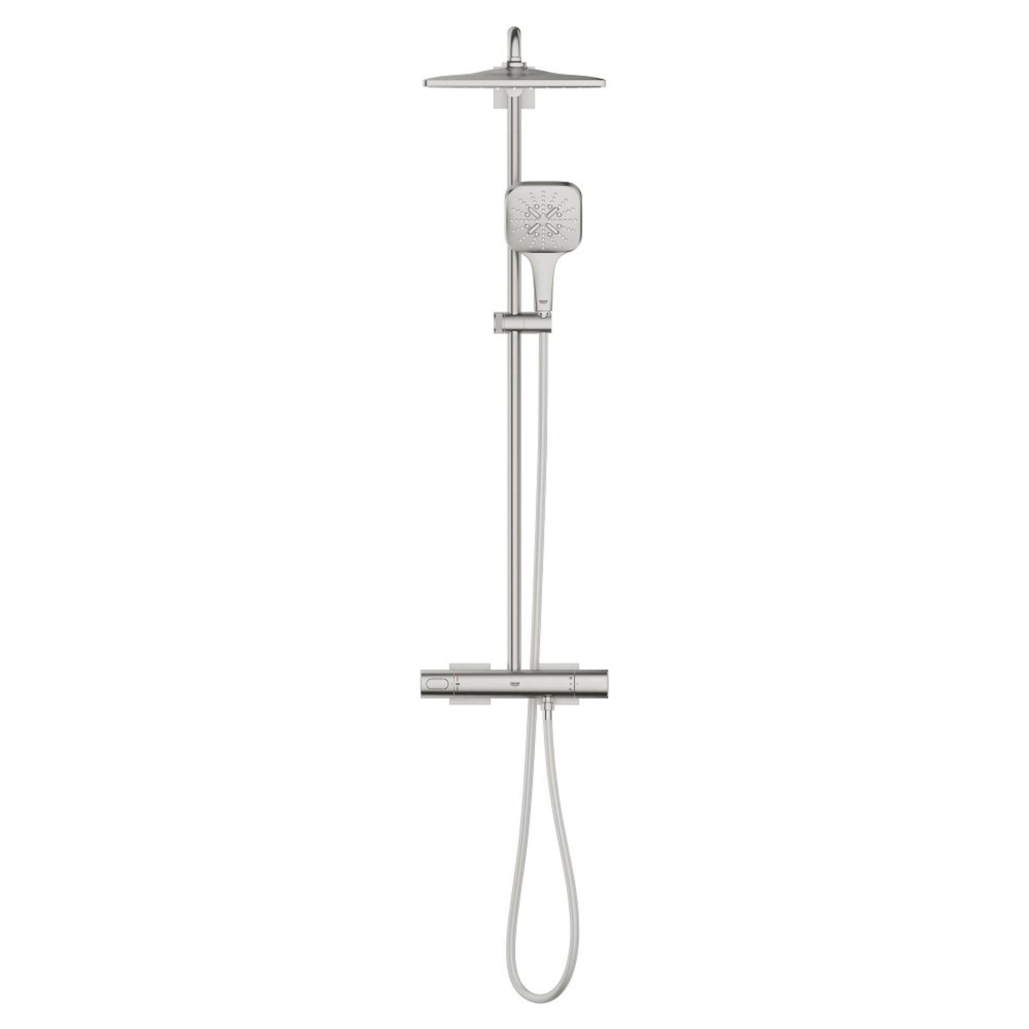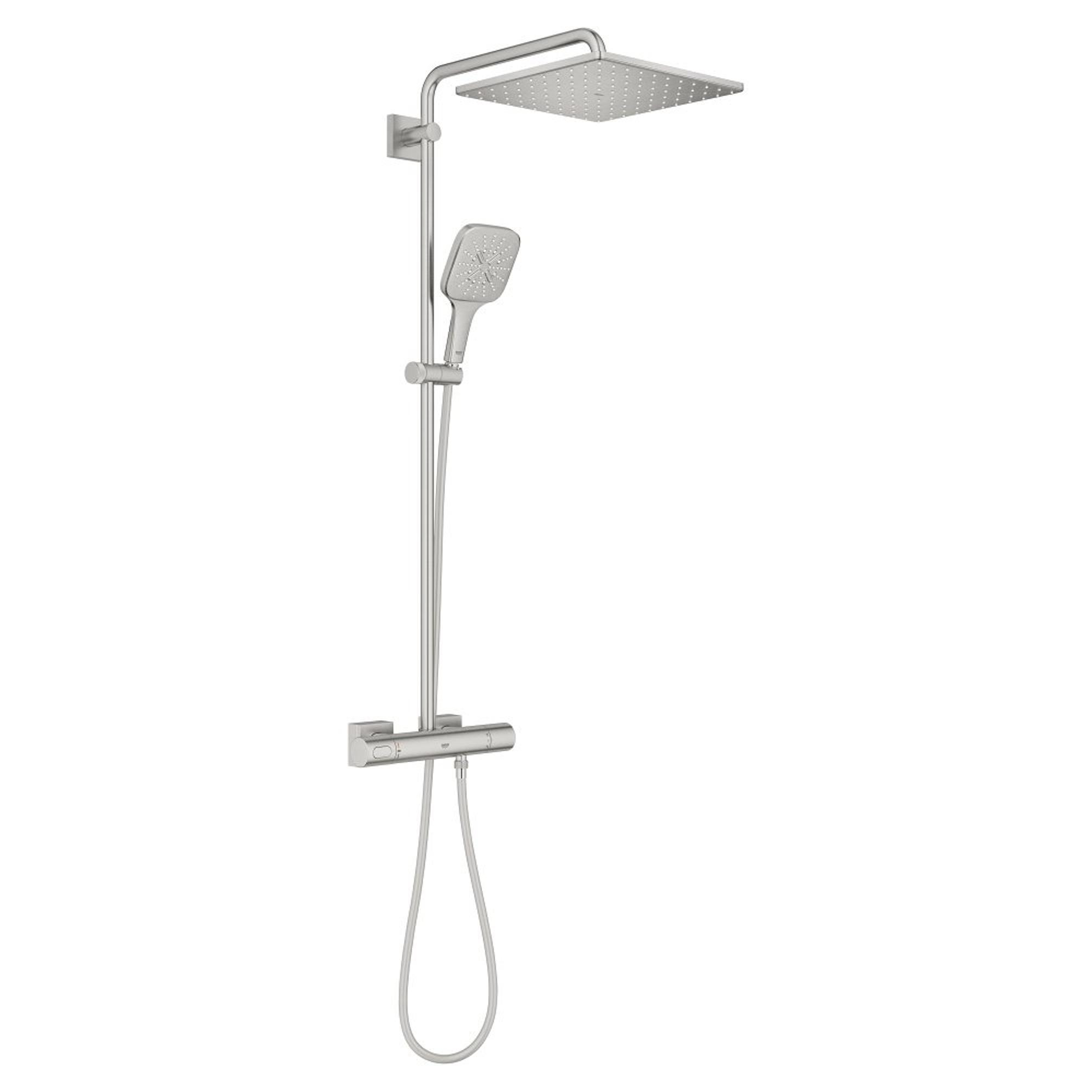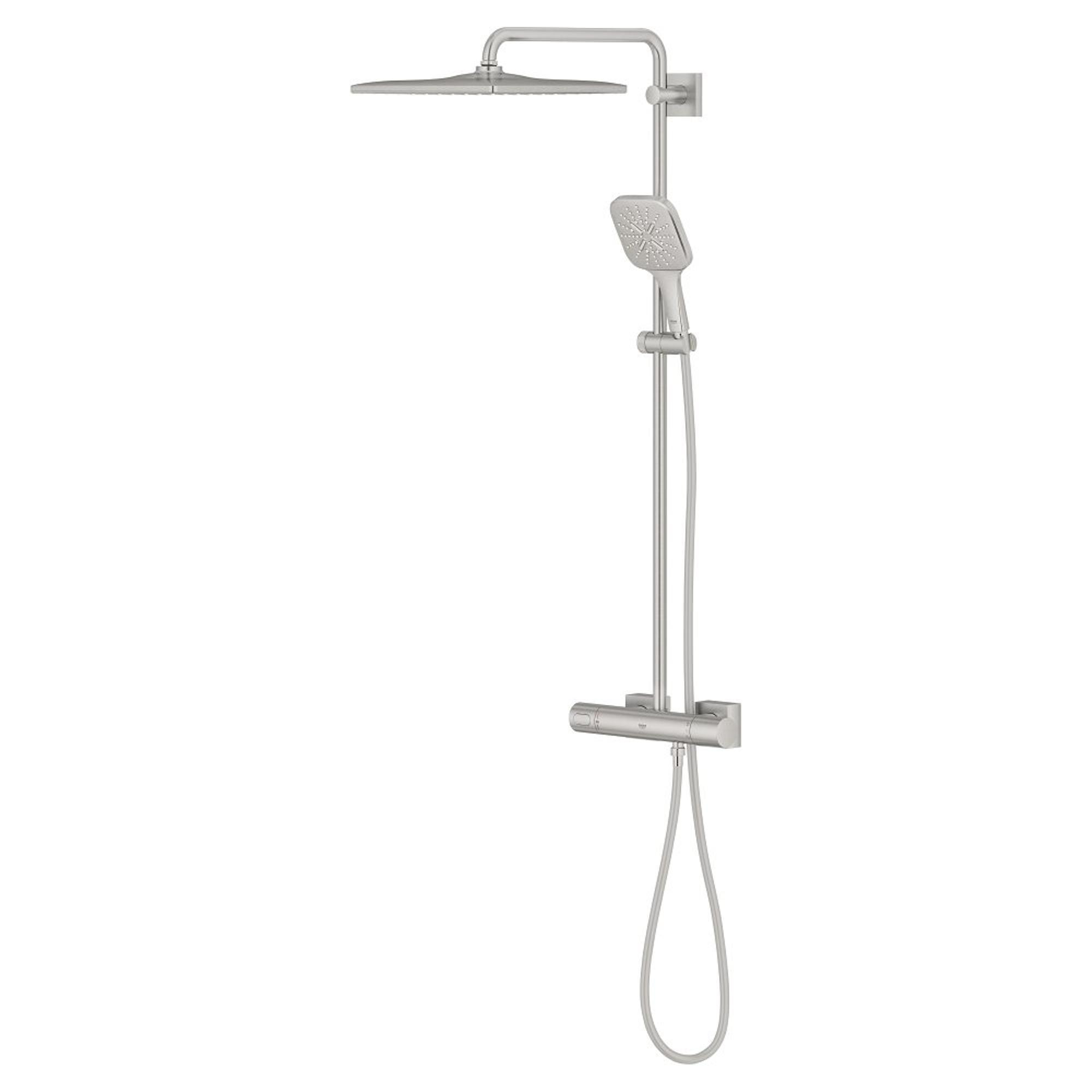 Superieure stijl in combinatie met premium prestaties – het GROHE Rainshower 310 SmartActive Cube douchesysteem in opvallend Supersteel (RVS kleur) Met een Rainshower systeem creëer je thuis eenvoudig een precieze, luxe douche-ervaring. Een GROHE Rainshower systeem combineert alle essentiële elementen in een enkel product. Zo kun je bijvoorbeeld zelf de straalsoorten kiezen in een douche met strakke, hedendaagse lijnen. Dankzij de innovatieve technologie beschikt het Rainshower systeem over beveiliging en milieuvriendelijke kenmerken, maar kun je ook kiezen voor een krachtige, veelzijdige douche die volledig op jouw wensen is afgestemd.