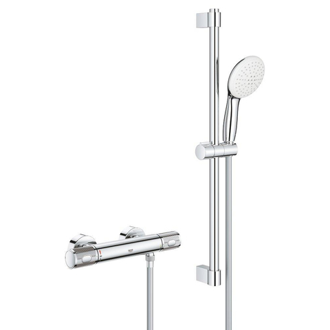 GROHE Grohtherm 1000 Performance Doucheset - thermostatische douchekraan - met rozetten - met glijstangset - 60cm - ronde handdouche - 2 straalsoorten - gladde doucheslang - chroom