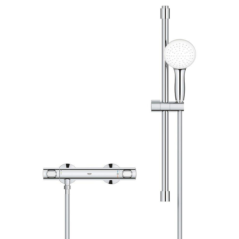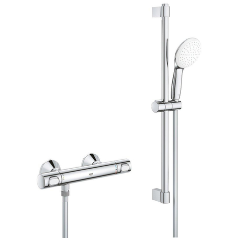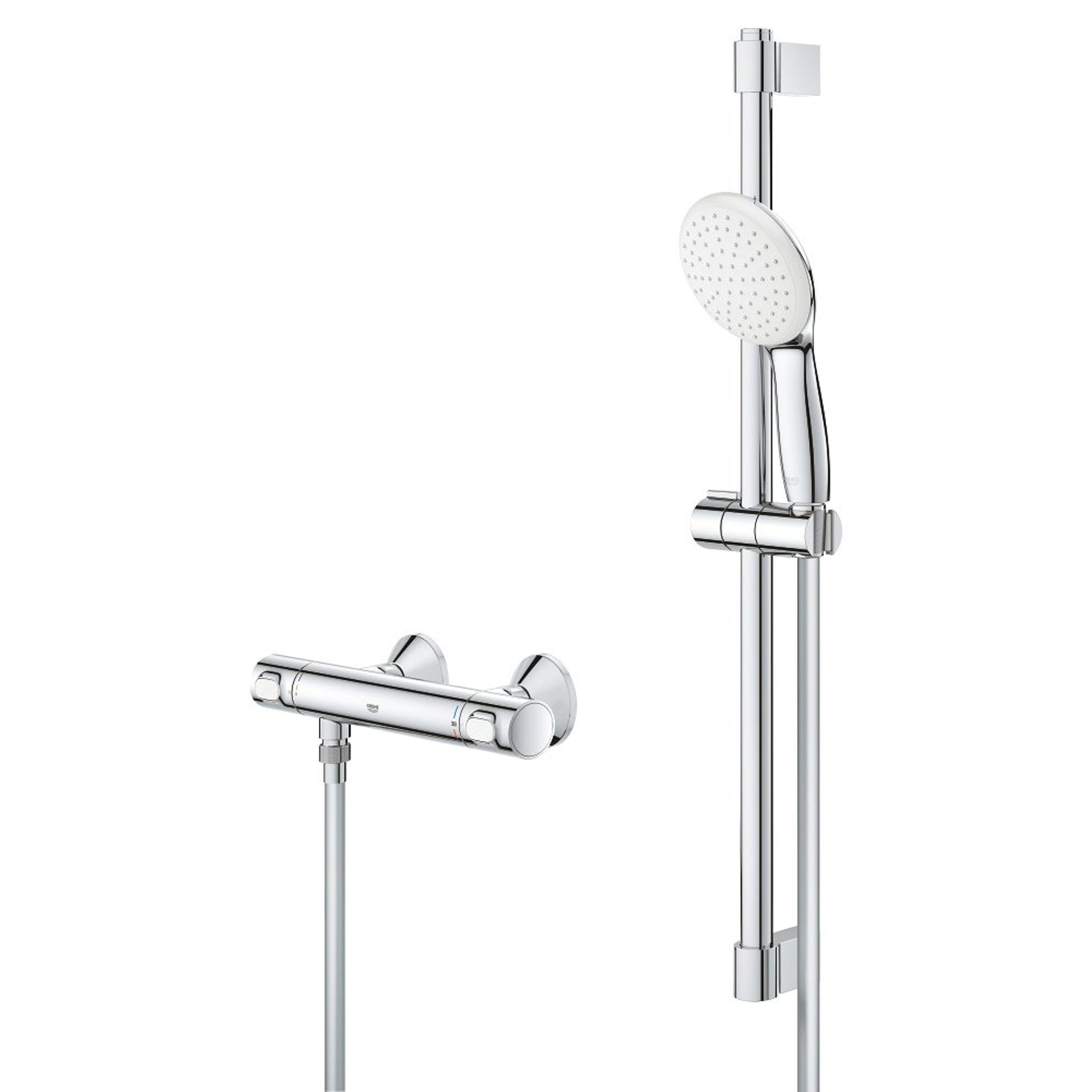 GROHE Grohtherm 500 Doucheset - thermostatische douchekraan - met glijstangset - 60cm - ronde handdouche - 1 straalsoort - chroom