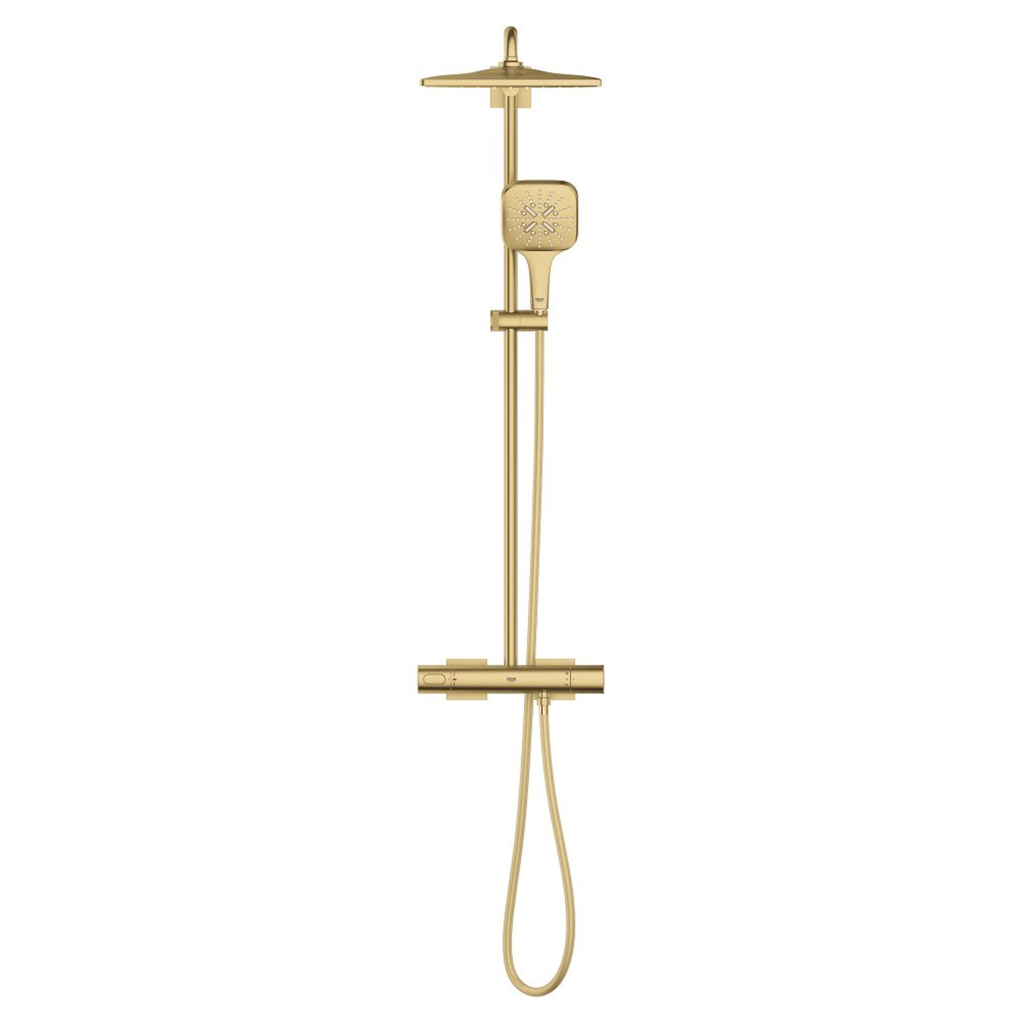 Superieure stijl in combinatie met premium prestaties – het GROHE Rainshower 310 SmartActive Cube douchesysteem in opvallend geborsteld Cool Sunrise (goud) Met een Rainshower systeem creëer je thuis eenvoudig een precieze, luxe douche-ervaring. Een GROHE Rainshower systeem combineert alle essentiële elementen in een enkel product. Zo kun je bijvoorbeeld zelf de straalsoorten kiezen in een douche met strakke, hedendaagse lijnen. Dankzij de innovatieve technologie beschikt het Rainshower systeem over beveiliging en milieuvriendelijke kenmerken, maar kun je ook kiezen voor een krachtige, veelzijdige douche die volledig op jouw wensen is afgestemd.