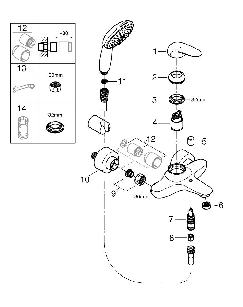 GROHE Eurostyle Badmengkraan - met doucheset - met omstel - chroom