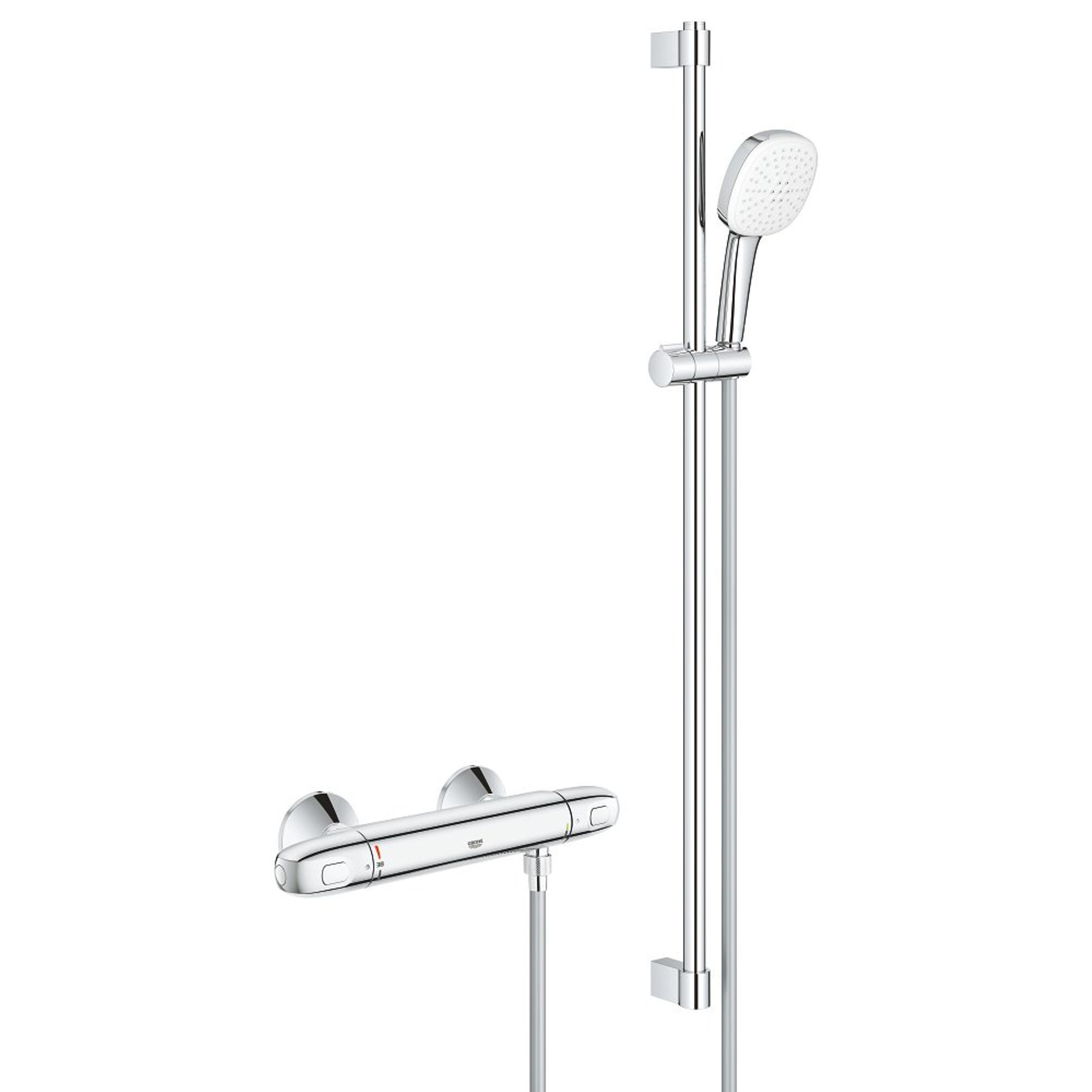 GROHE Grohtherm 1000 Doucheset - thermostatische douchekraan - met glijstangset - 90cm - vierkante handdouche - 3 straalsoorten - gladde doucheslang - chroom