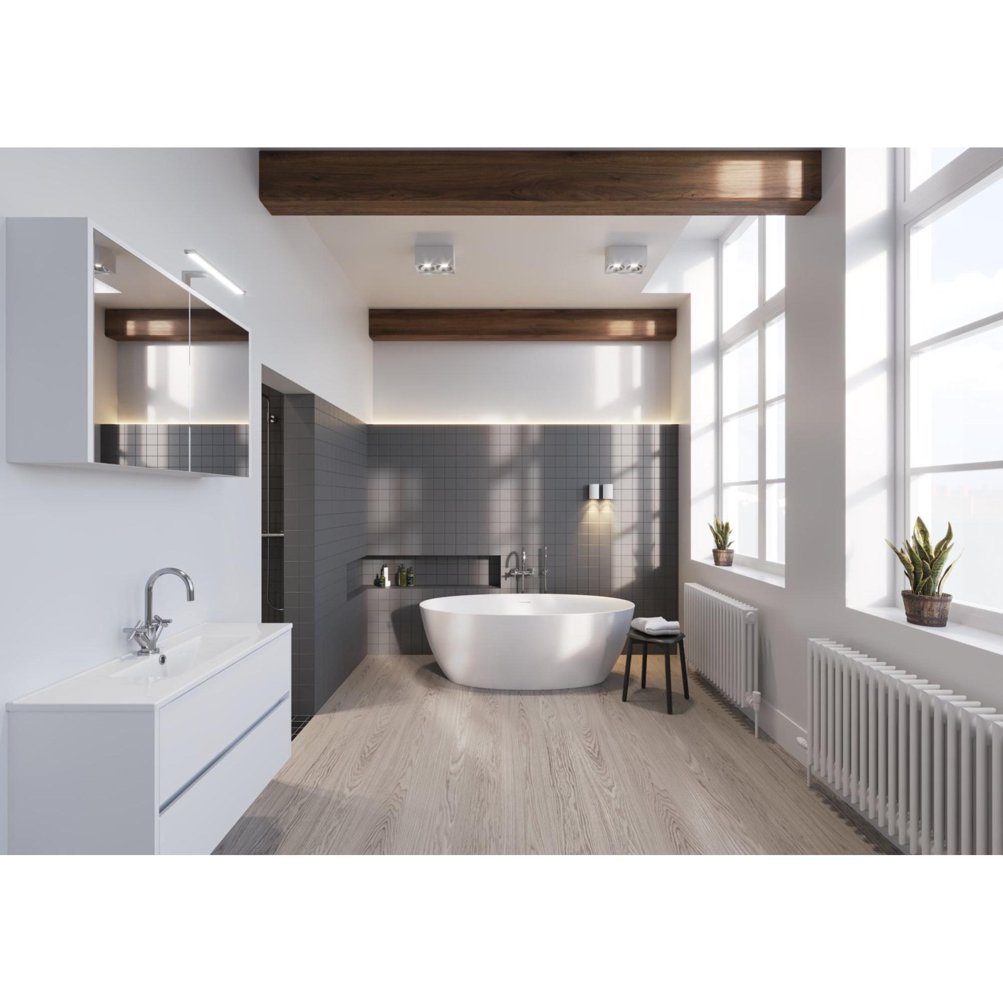 De Zeza Bruno onderscheidt zich door zijn elegantie. Het vrijstaande design geeft een gevoel van ruimte en creëert een luxe sfeer in de badkamer. De strakke lijnen en vloeiende vormen van het bad geven het een tijdloze uitstraling die moeiteloos samengaat met diverse interieurstijlen. Het bad is een ware eyecatcher die de badkamer transformeert tot een oase van rust en schoonheid.