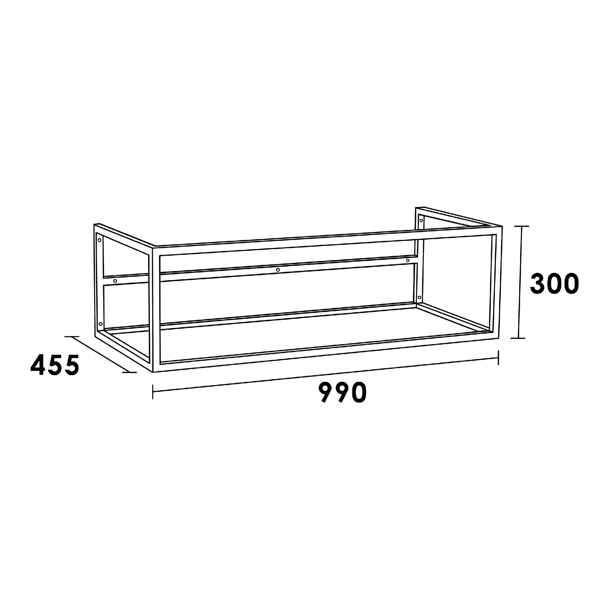 - Het frame is gemaakt van mat zwart MDF en heeft een afmeting van 119x30x45.5cm.
