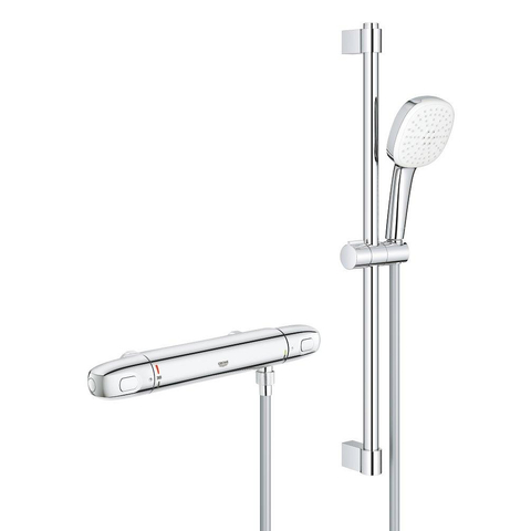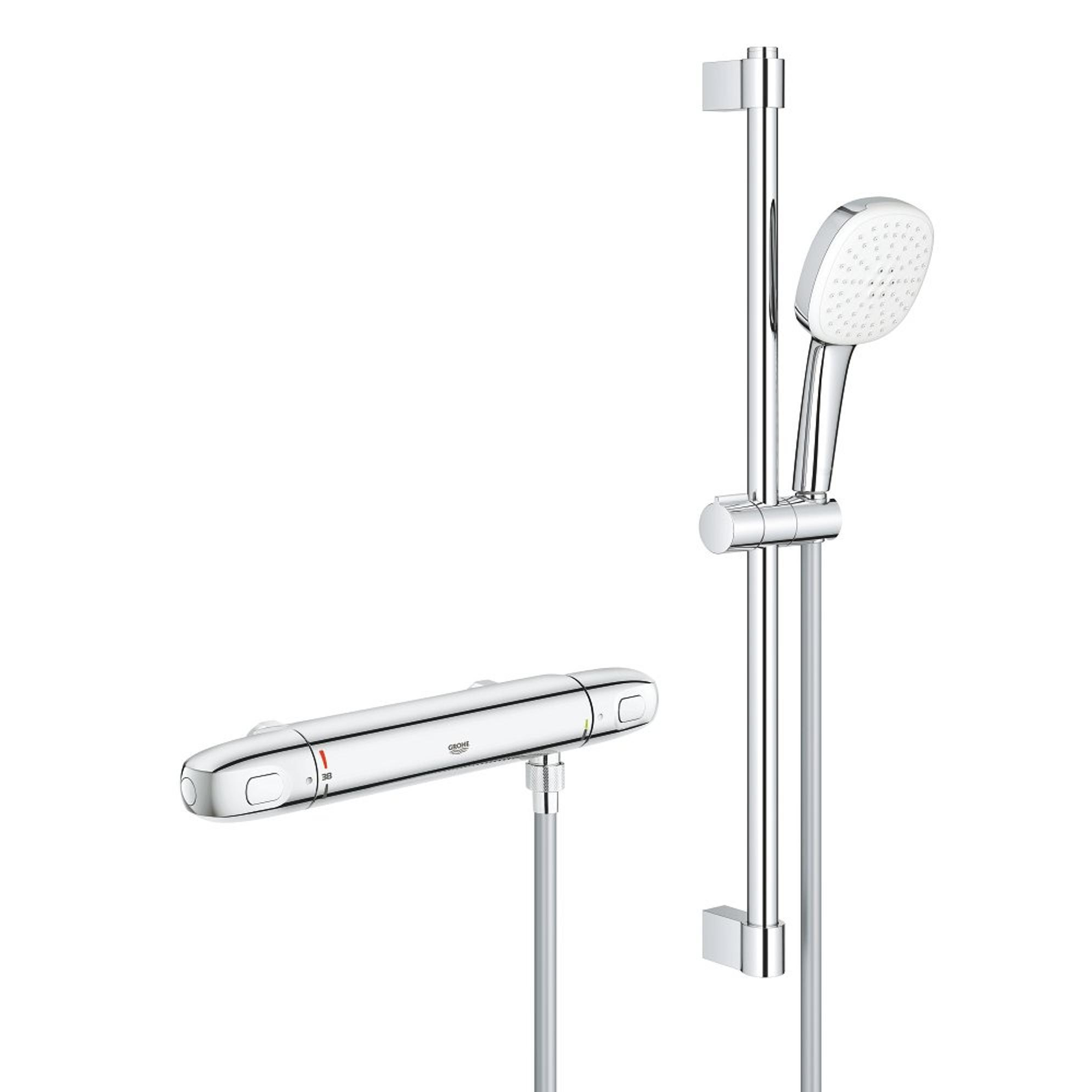 GROHE Grohtherm 1000 Doucheset - thermostatische douchekraan - HOH=15cm - met glijstangset - 60cm - vierkante handdouche - 2 straalsoorten - gladde doucheslang - chroom