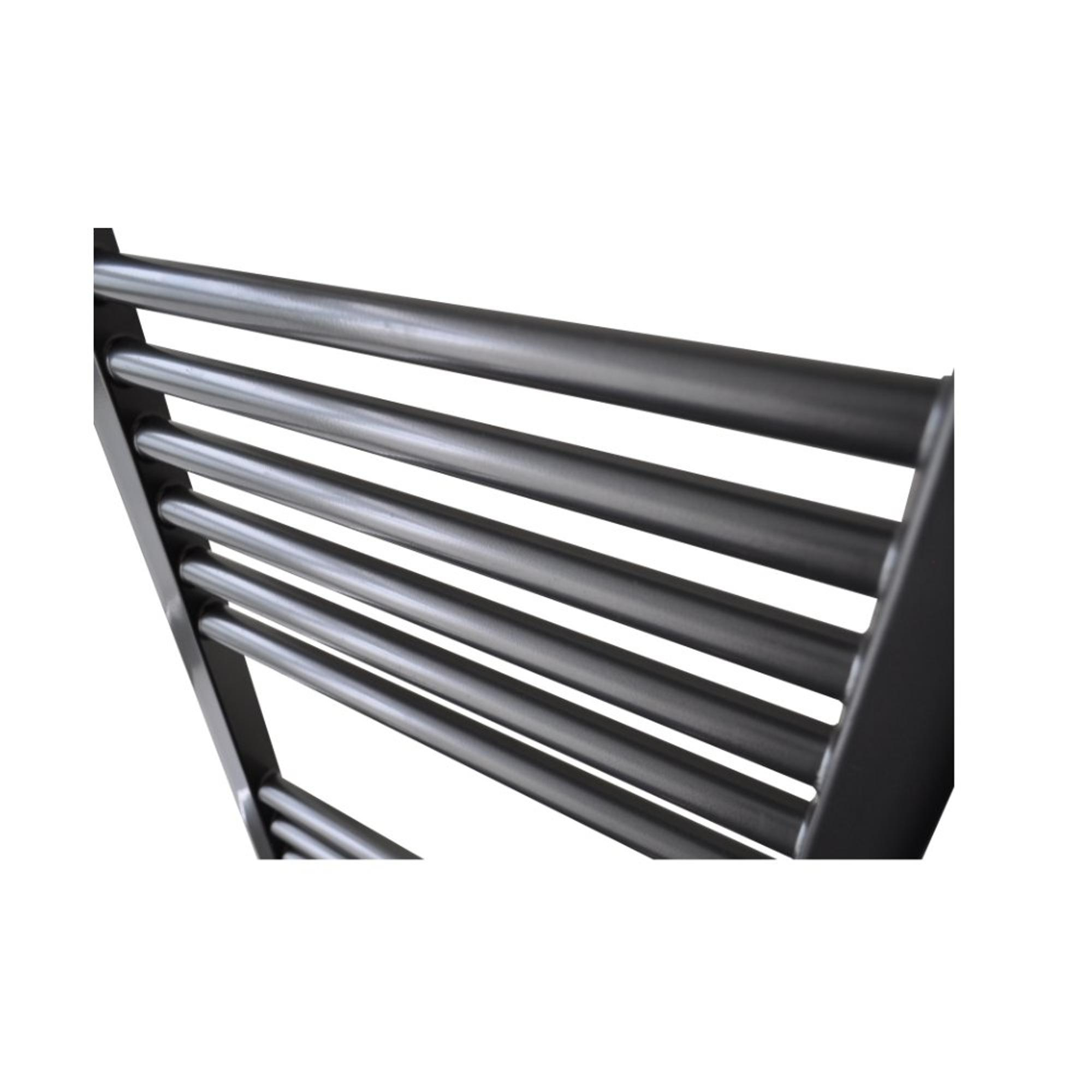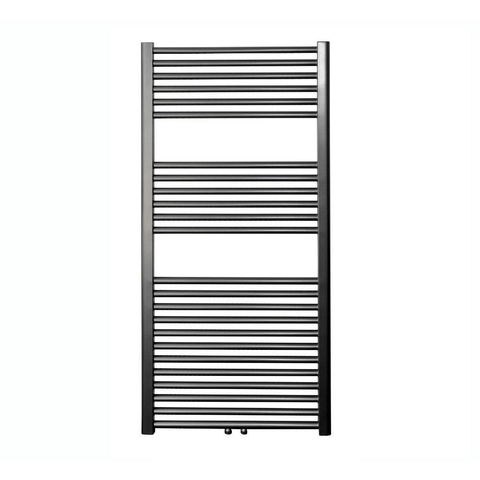 Een steeds populairder model is de Sanicare radiator met een midden/onder aansluiting met een hoh maat van 5 cm. Deze middenaansluiting radiator heeft als grote voordeel dat dankzij de onderaansluiting de leidingen bijna niet zichtbaar zijn. Hierdoor komt de stijl en vormgeving van de radiator nog beter tot zijn recht. Deze radiator kan ook nog gewoon aangesloten worden op de reguliere aansluitpunten. Er zijn dus 4 standaard aansluitpunten en 2 extra aansluitpunten midden/onder. Deze Sanicare design radiator met middenaansluiting van 120 cm hoog en 60 breed wordt ook wel een buisradiator of handdoekradiator genoemd. Deze radiator bestaat uit buizen met ruime plaats om uw handdoeken op te hangen en ze luxueus warm te maken. De radiator neemt niet veel ruimte in beslag en brengt een vleugje luxe naar uw badkamer. Hij produceert een uitstekende warmteafgifte en voorziet u van warme handdoeken in een mum van tijd. Dit model radiator is er ook in een 160 cm hoog. Ook functioneel en stijlvol zijn de collectie handdoekbeugels en handdoekknoppen (ook handig om een badjas aan op te hangen). Kleur: Gun metal Uitvoering: middenaansluiting, recht Afmeting: 120 x 60 cm. Hart op Hart: 5 cm. Watt: 810 Incl. ophanging Aan te sluiten midden/onder, aan de onder- of bovenzijde. Incl. 3 afsluiters en ontluchter voor de aansluitpunten welke niet gebruikt zullen worden.