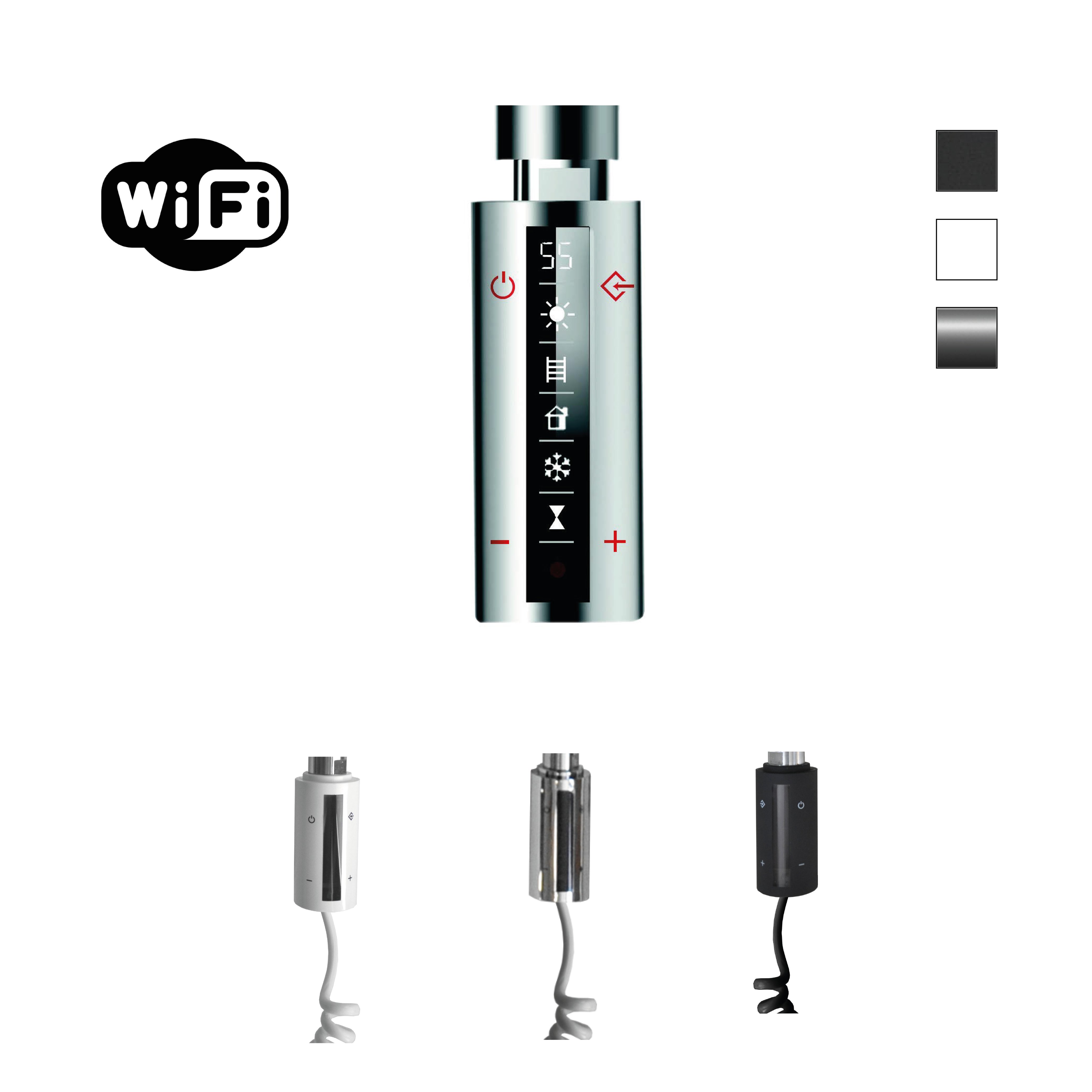 Naast zijn esthetische waarde is de Sanicare Elektrische Design Radiator Denso ook uiterst efficiënt in gebruik. Met de wifi-functie kun je de radiator eenvoudig bedienen via je smartphone of tablet, waardoor je altijd de controle hebt over de temperatuur in de badkamer. De zwarte thermostaat linksonder zorgt voor een nauwkeurige en betrouwbare regeling van de warmte, waardoor je energie bespaart en tegelijkertijd geniet van een comfortabele omgeving.