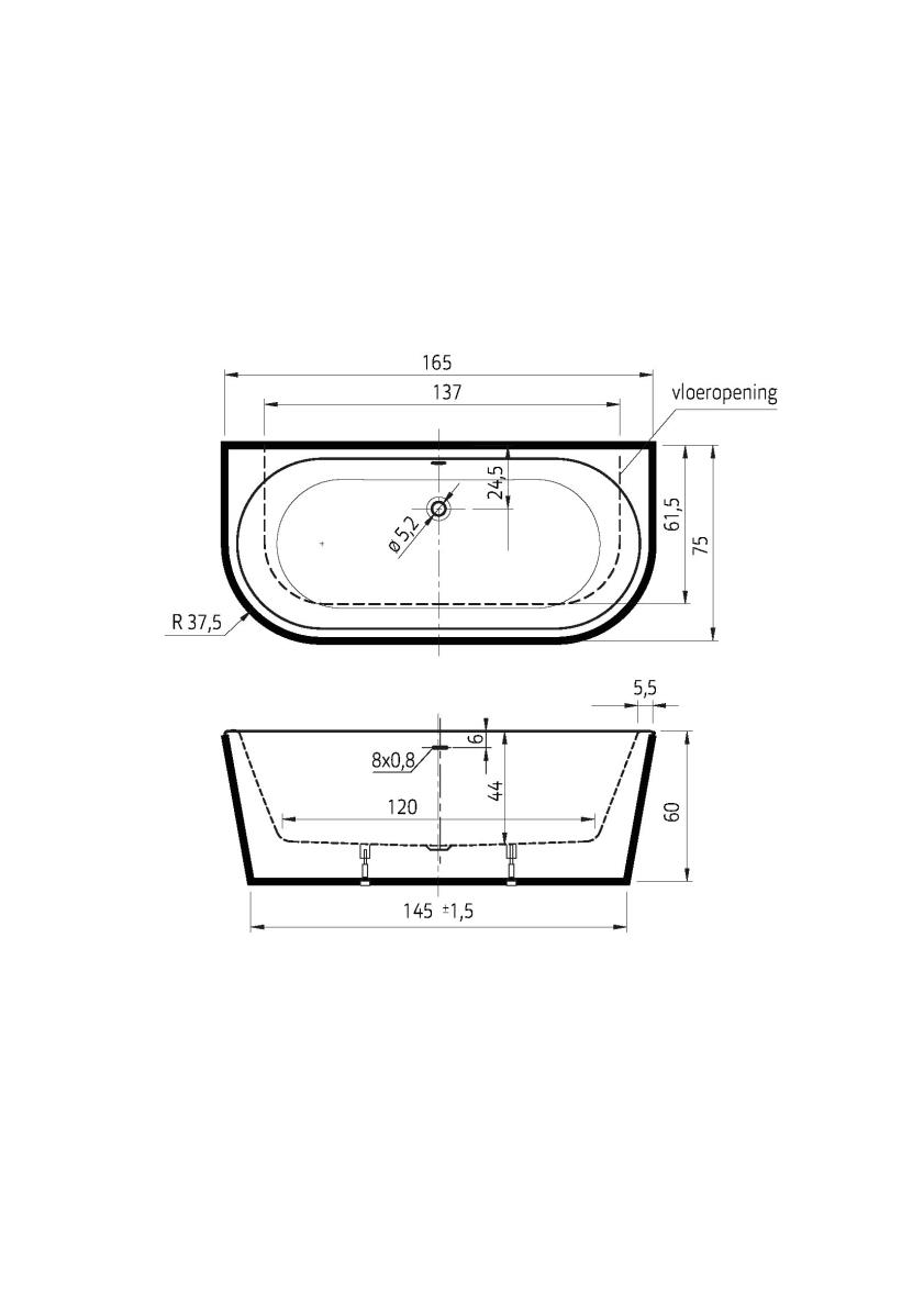 Praktisch ontwerp De overloop is rond en centraal geplaatst, wat zorgt voor een gelijkmatige waterafvoer. Dit bad wordt geleverd zonder afvoer/overloopcombinatie, zodat je zelf een bijpassend systeem naar wens kunt kiezen. Optioneel is het bad uit te breiden met een luchtsysteem EX-05 voor een extra wellness-ervaring.
