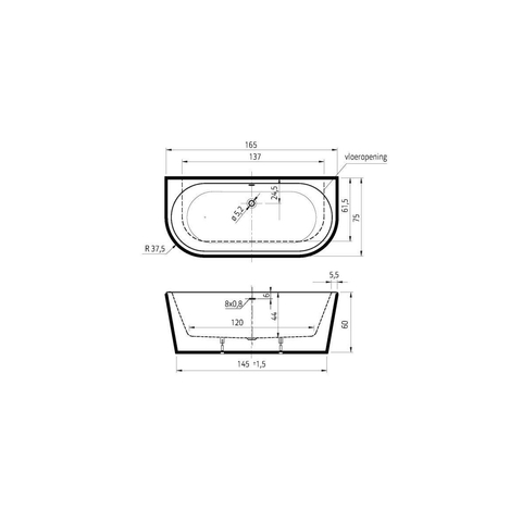 Het Charley half-vrijstaande bad combineert luxe en ruimtebesparing in één stijlvol ontwerp. Met zijn afmetingen van 165 x 75 x 58 cm biedt dit bad voldoende comfort zonder veel ruimte in beslag te nemen. Dankzij de elegante vormgeving en de glanzend witte afwerking past het perfect in zowel moderne als klassieke badkamers.Ruimtebesparend en stijlvol Dit half-vrijstaande bad is ideaal voor wie de uitstraling van een vrijstaand bad wil, maar beperkt is in ruimte. Het kan strak tegen een wand geplaatst worden, terwijl het toch de luxe en elegantie van een vrijstaand model behoudt. Combineer het met zwarte kranen voor een stoer effect of met gouden accenten voor een extra luxe uitstraling.