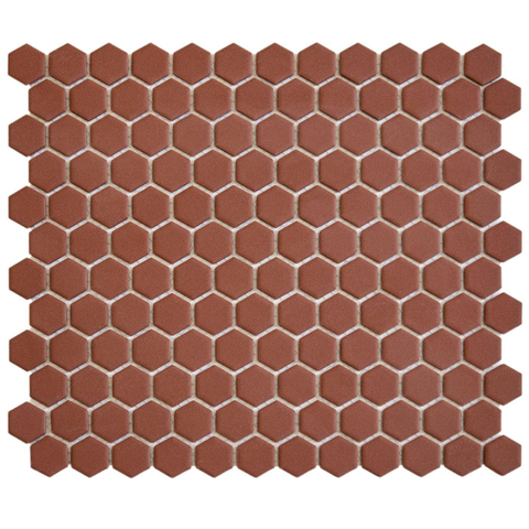 De Hexagon mozaïektegel straalt pure schoonheid uit met zijn unieke zeshoekige vorm en warme Terra Cotta kleur. Het patroon van de tegel zorgt voor een speelse en toch elegante uitstraling, waardoor elke ruimte direct opgewaardeerd wordt. Of het nu op de wand of vloer is, deze tegel voegt een vleugje charme toe aan elke omgeving.