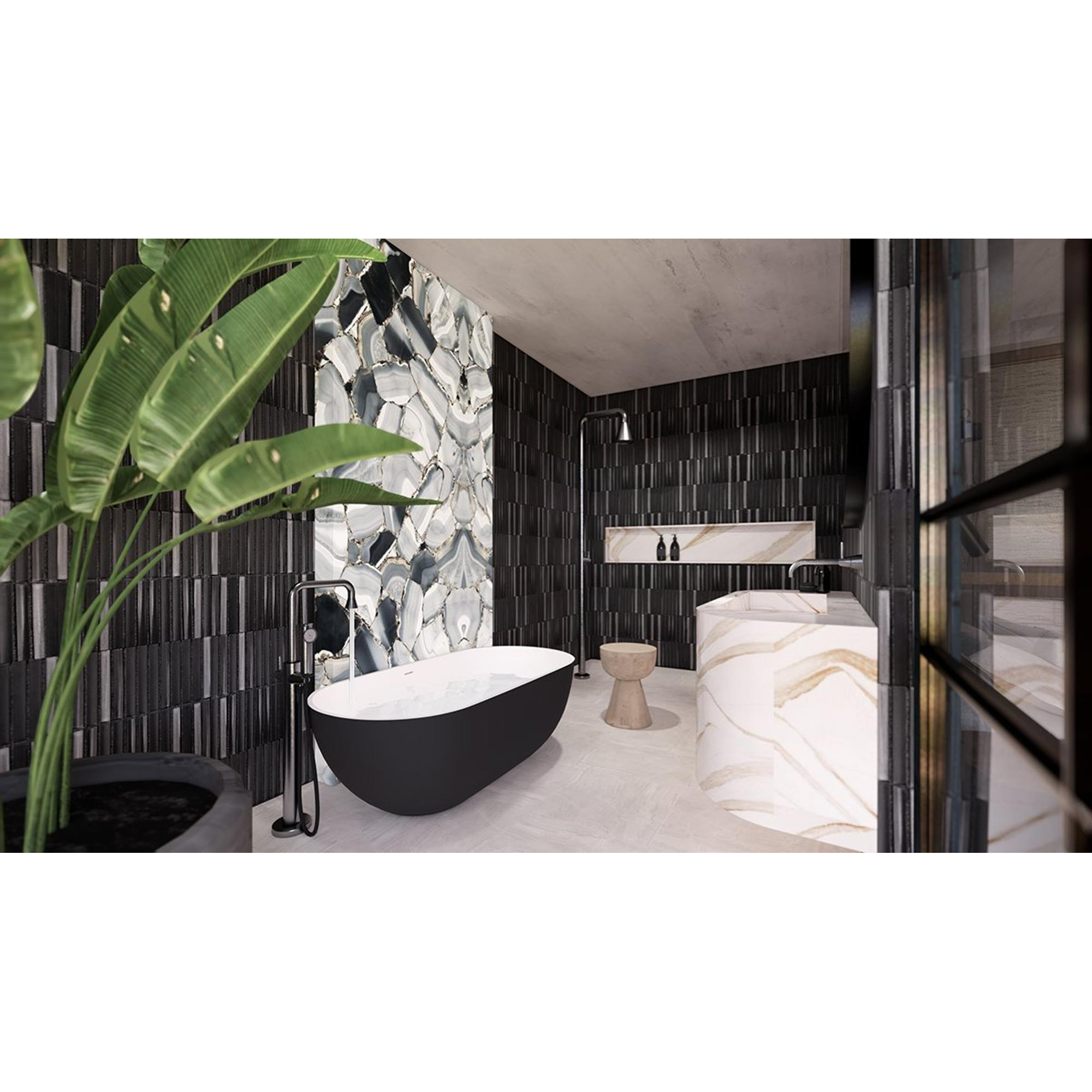 Dankzij de rechthoekige vorm en het formaat van 29.6x29.9cm is de Mosaic Factory Sevilla mozaïektegel uiterst veelzijdig in gebruik. Of je nu een volledige muur wilt bedekken of een accentmuur wilt creëren, deze tegel past zich moeiteloos aan aan elke ruimte. De mix van mat en glans voegt diepte en textuur toe, waardoor een dynamische en boeiende uitstraling ontstaat.
