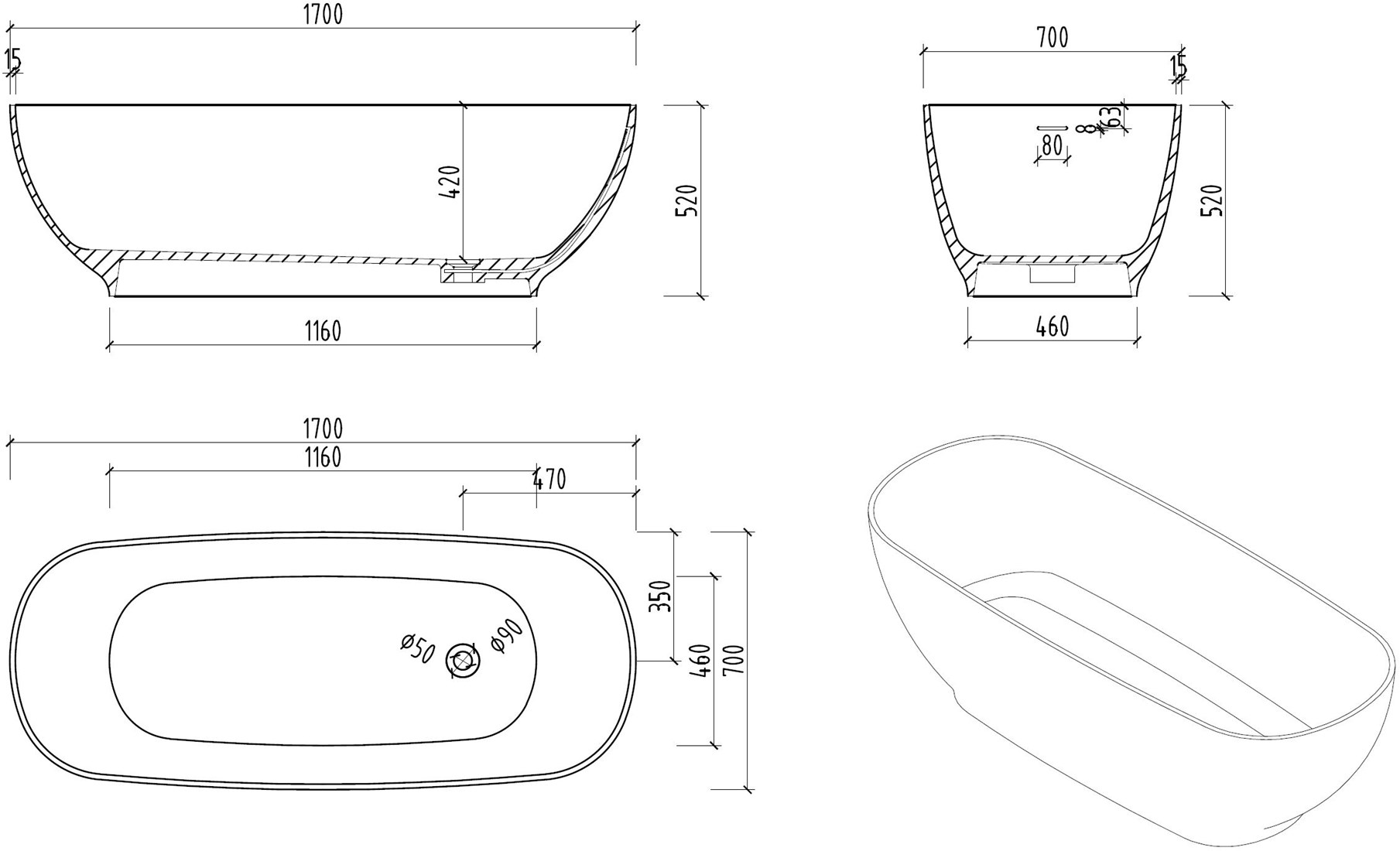 Naast zijn esthetische waarde biedt het MONDIAZ ROCK vrijstaande bad ook een ongeëvenaard comfort. De royale afmetingen van 170x70cm zorgen ervoor dat je voldoende ruimte hebt om volledig te ontspannen en tot rust te komen. Het ergonomische ontwerp ondersteunt je lichaam op de juiste manier, waardoor je kunt genieten van een comfortabele en ontspannende baddertijd.