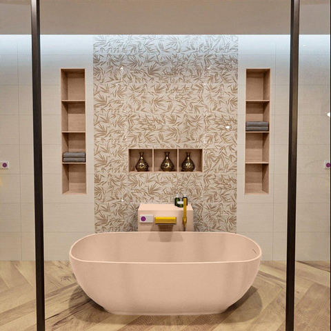 Dit MONDIAZ ROCK vrijstaande bad straalt een onmiskenbare stijl uit die elke badkamer transformeert in een luxe oase. Het slanke ontwerp en de subtiele roze kleur voegen een vleugje elegantie toe aan de ruimte. Het bad is ontworpen met oog voor detail en vakmanschap, waardoor het een tijdloze uitstraling heeft die jarenlang meegaat.