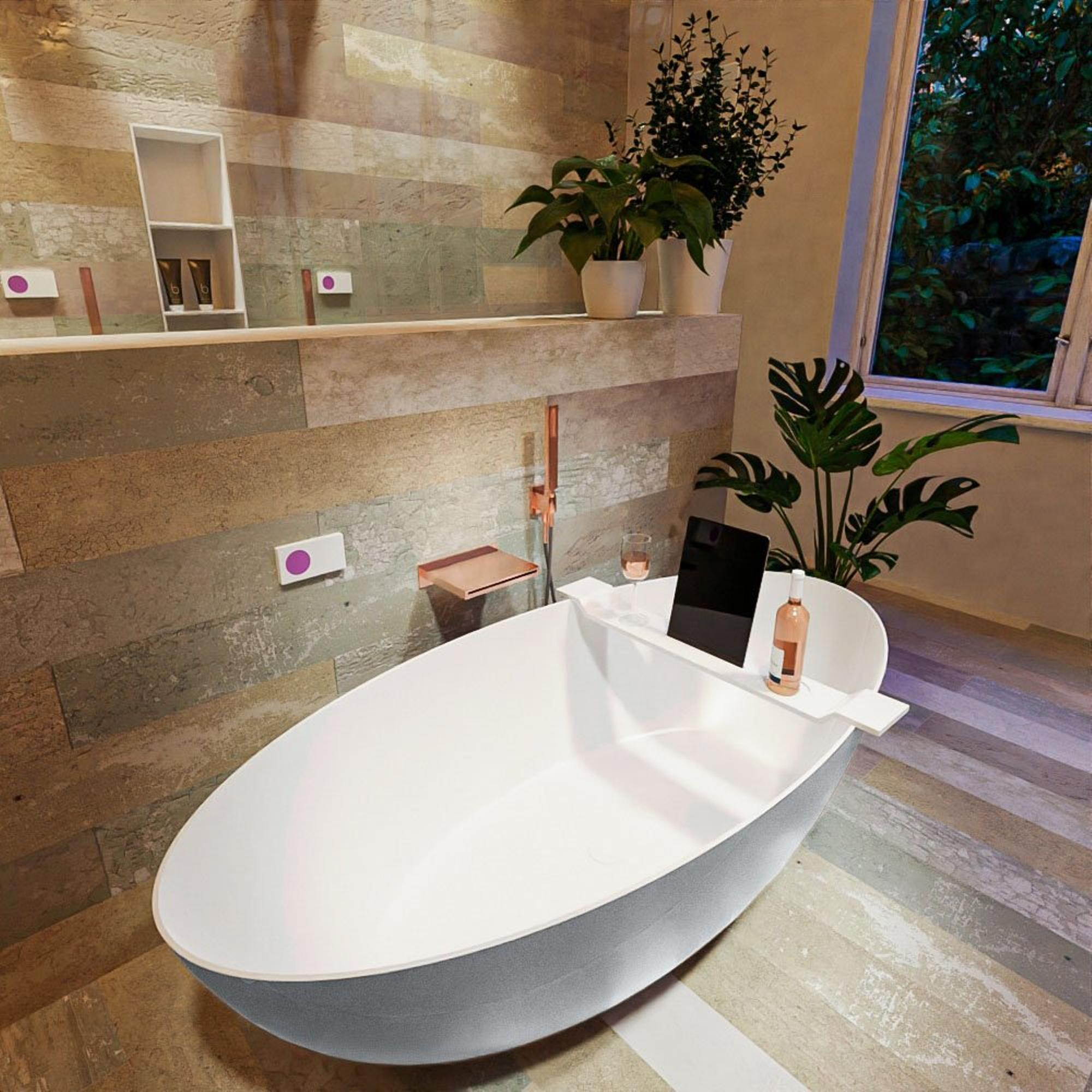 De elegante kleurcombinatie van Plata / Talc voegt een vleugje verfijning toe aan je badkamerinterieur. Het vrijstaande ontwerp straalt een tijdloze elegantie uit die je badkamer een luxe uitstraling geeft.