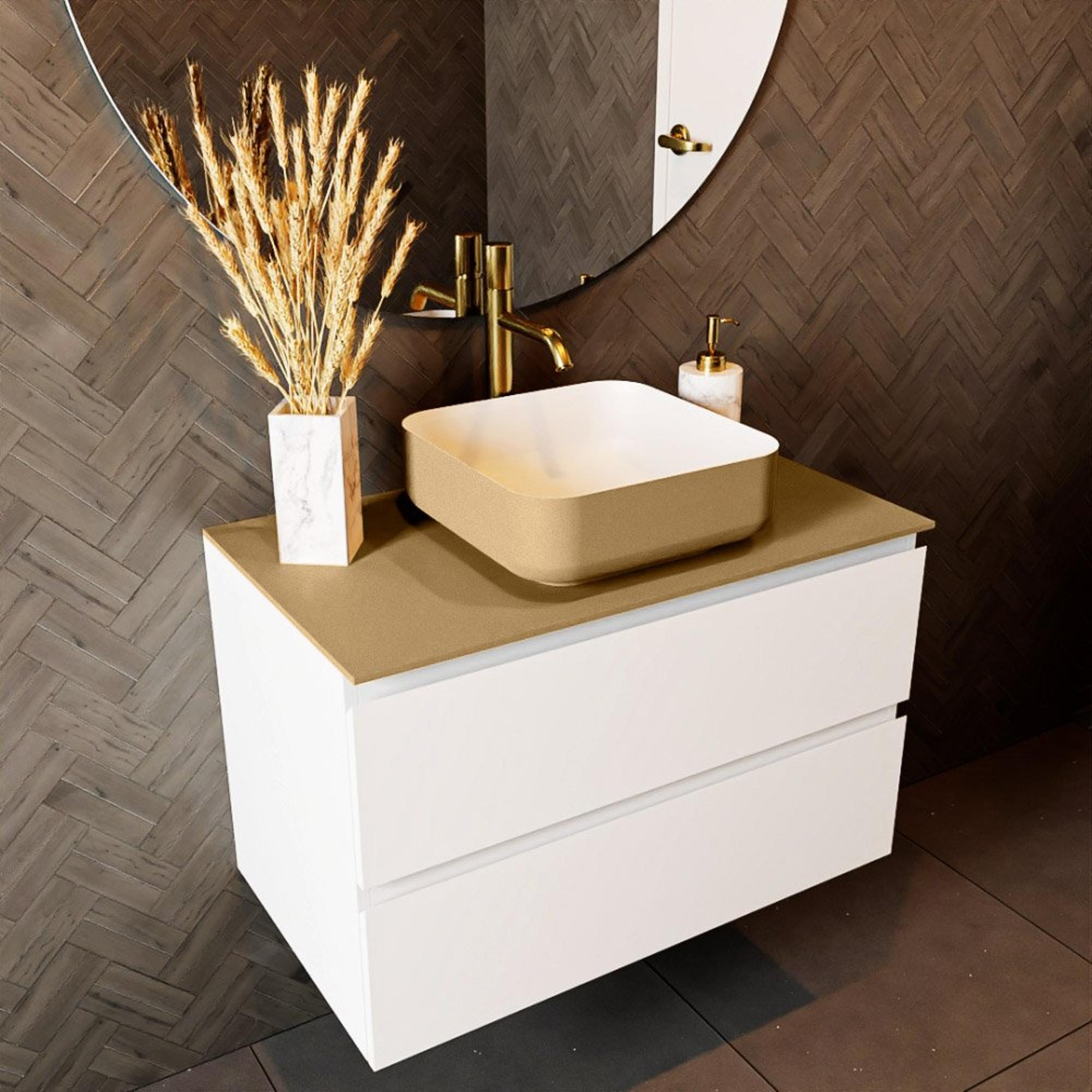 Dit prachtige Mondiaz TOP 46 Topblad is een ware aanwinst voor jouw badkamer. Met zijn afmetingen van 80x46x0.9cm en de elegante Oro kleur, voegt dit topblad direct een vleugje stijl toe aan de ruimte. Geschikt voor gebruik met een afdekplaat en vervaardigd uit duurzaam solid surface materiaal, combineert dit topblad functionaliteit met een luxe uitstraling.