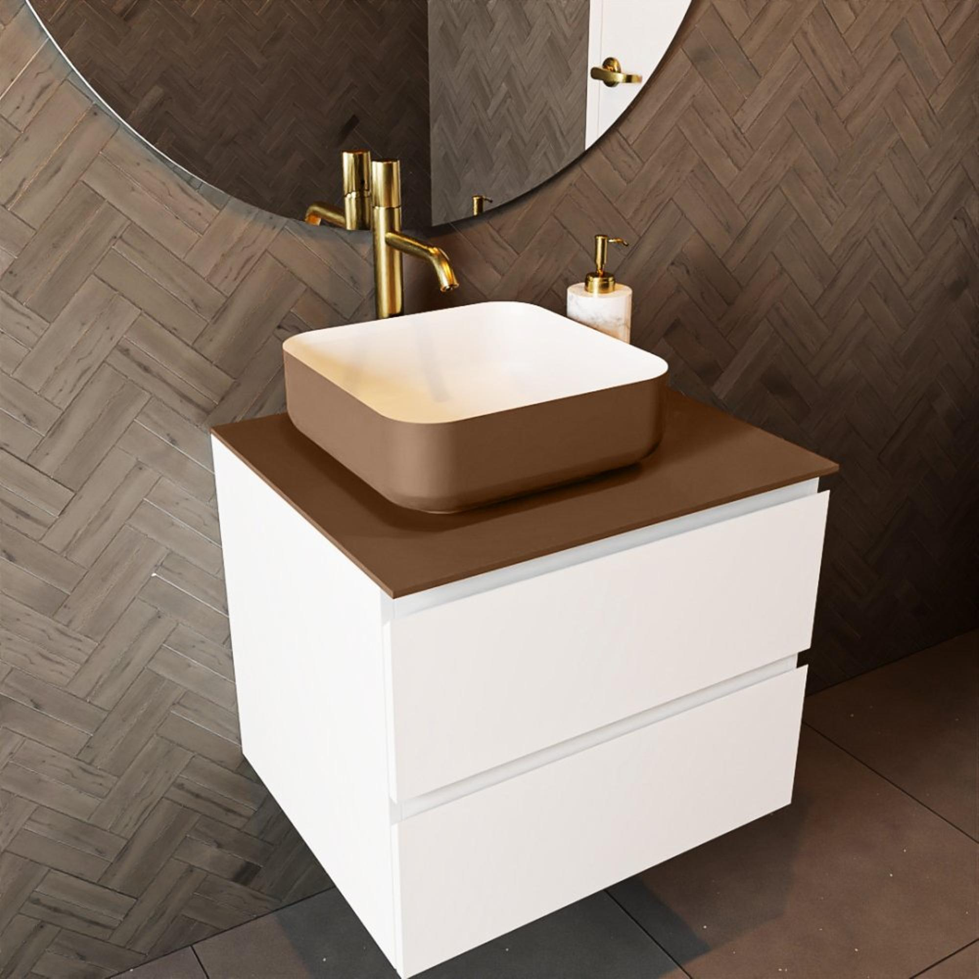 Met het Mondiaz TOP 51 Topblad creëer je een sfeervolle ambiance in je badkamer. De warme roestige tint geeft een gezellige en uitnodigende uitstraling aan de ruimte. Of je nu een ontspannend bad neemt of je klaarmaakt voor een nieuwe dag, dit topblad zorgt voor een rustgevende en stijlvolle omgeving.